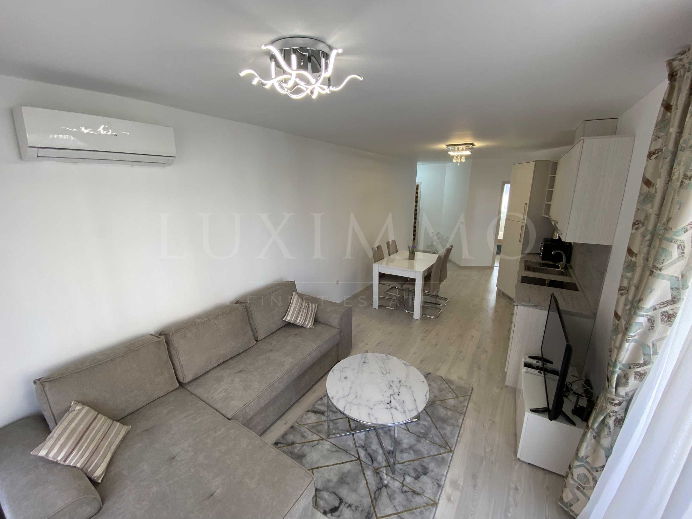 Апартаментът е обзаведен с висок клас мебели и уреди, за да осигури на гостите си максимално удобство по време на престоя им. С красив и функционален дизайн, който ще задоволи и най-взискателния вкус. Светлината и пастелните тонове на интериора създават уютна и спокойна атмосфера, която е перфектна за релаксация след дългия ден на плажа.