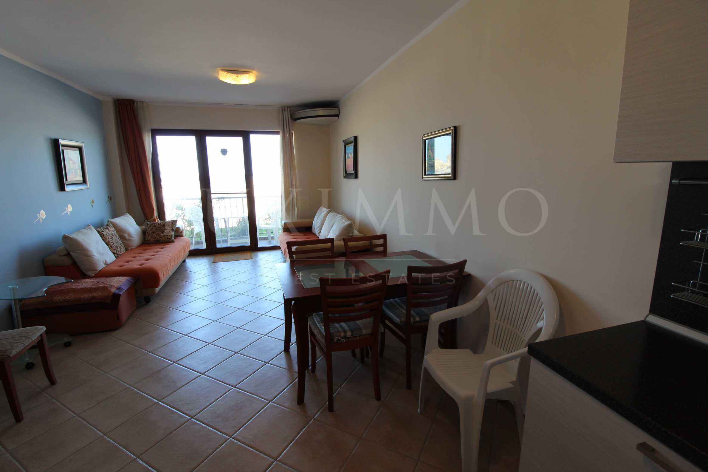 Благодарение на удобната си локация, жилището предлага на бъдещите собственици всичко необходимо за спокоен и безгрижен отдих с бърз достъп до хубав пясъчен плаж. Големите прозорци тип "френски" благоприятстват за приток на светлина и морски бриз във всекидневната.