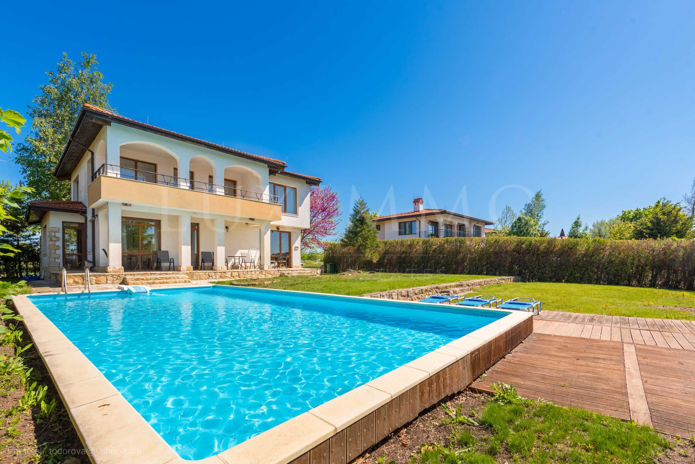 Вилата разполага с външен басейн, красиво озеленен двор и паркомясто. Бутиковият имот осигурява максимален комфорт и релакс, абсолютно уединение и неповторима атмосфера на отдих, съчетаващи пространство, автономност, лукс и уют.