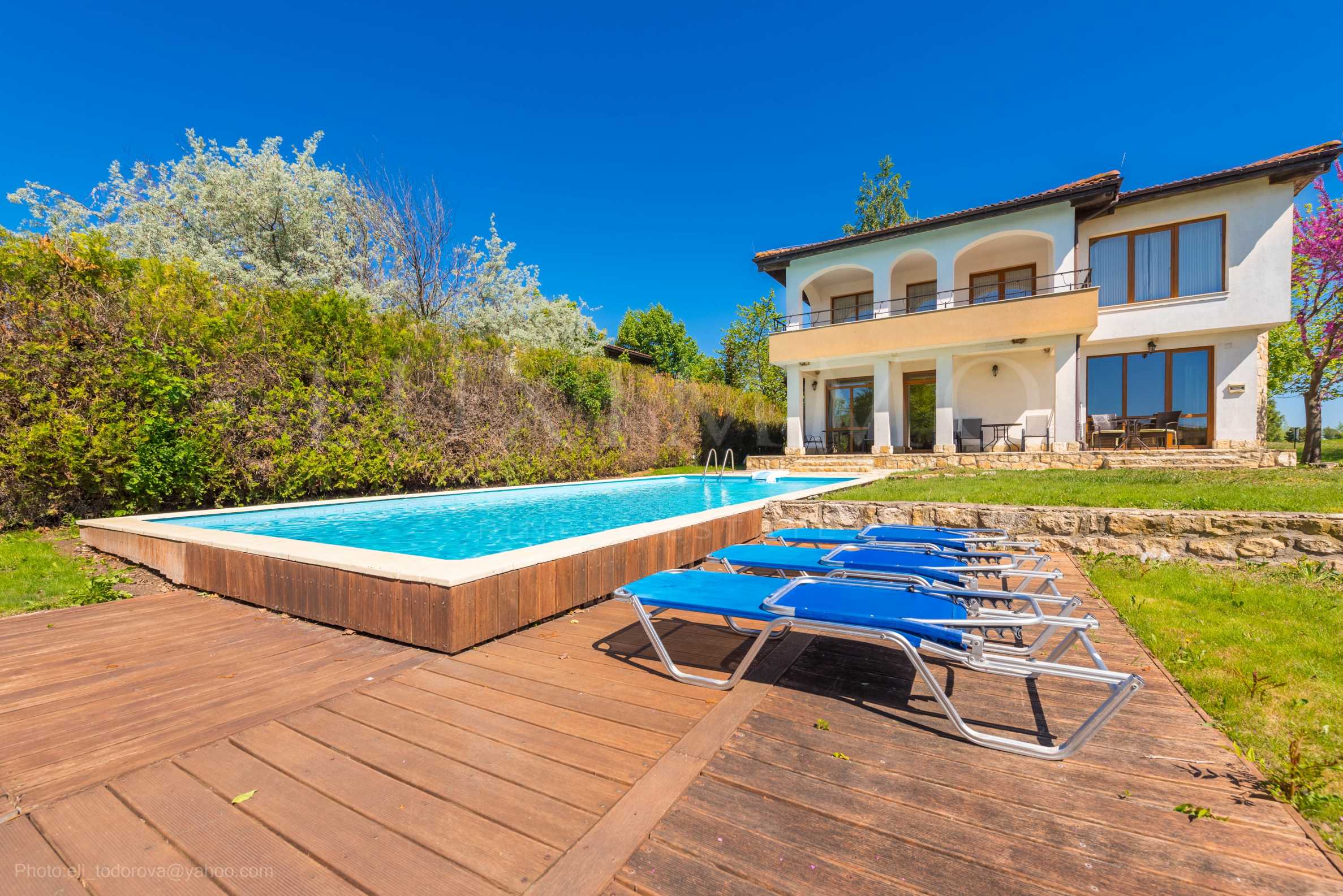 Вилата разполага с външен басейн, красиво озеленен двор и паркомясто. Имотът осигурява максимален комфорт и релакс, абсолютно уединение и неповторима атмосфера на отдих, съчетаващи пространство, автономност, лукс и уют.