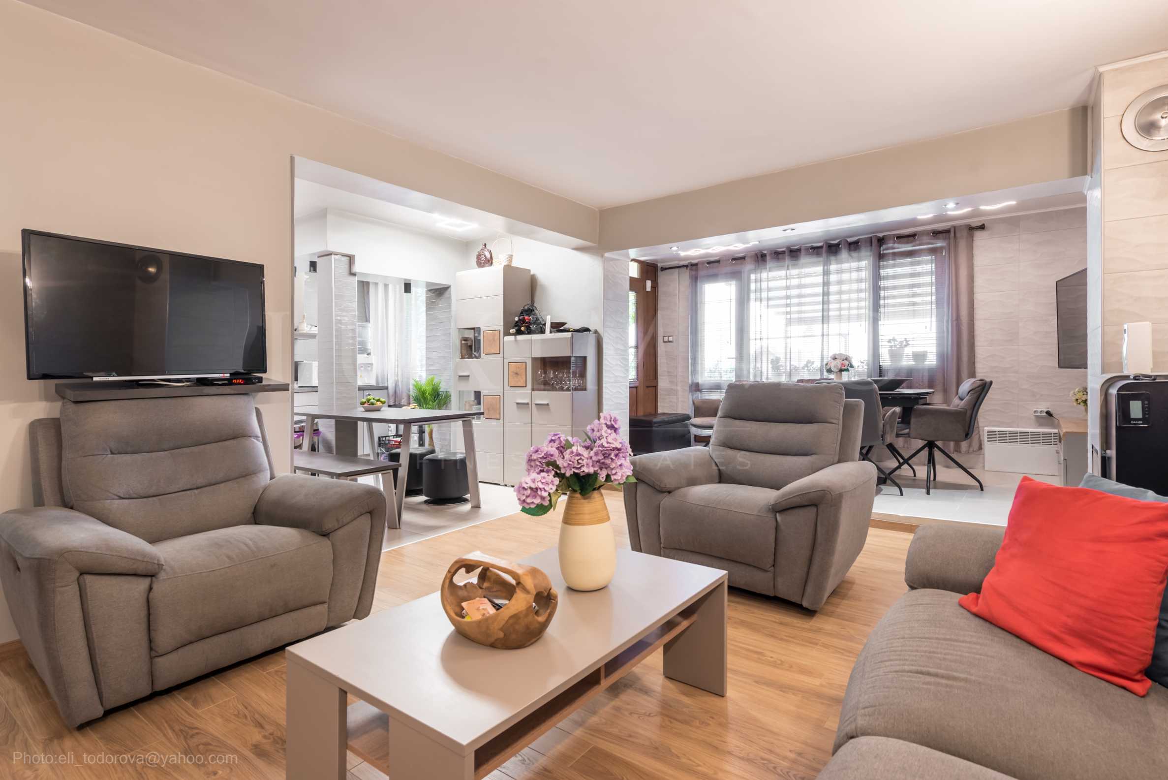 Къщата е от тип "близнак" и се състои от: