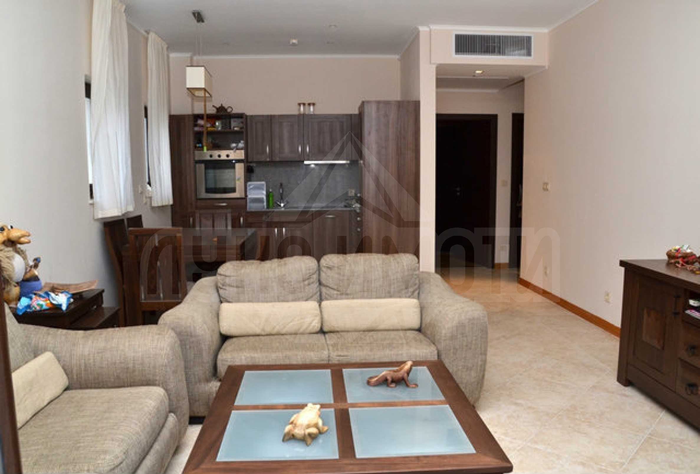 Интериорното пространство на апартамента е планирано за да отговаря на функционалност и удобство, големи и светли помещения и тераса, пропорционална кухня и уютна баня. Помещенията са централно климатизирани.