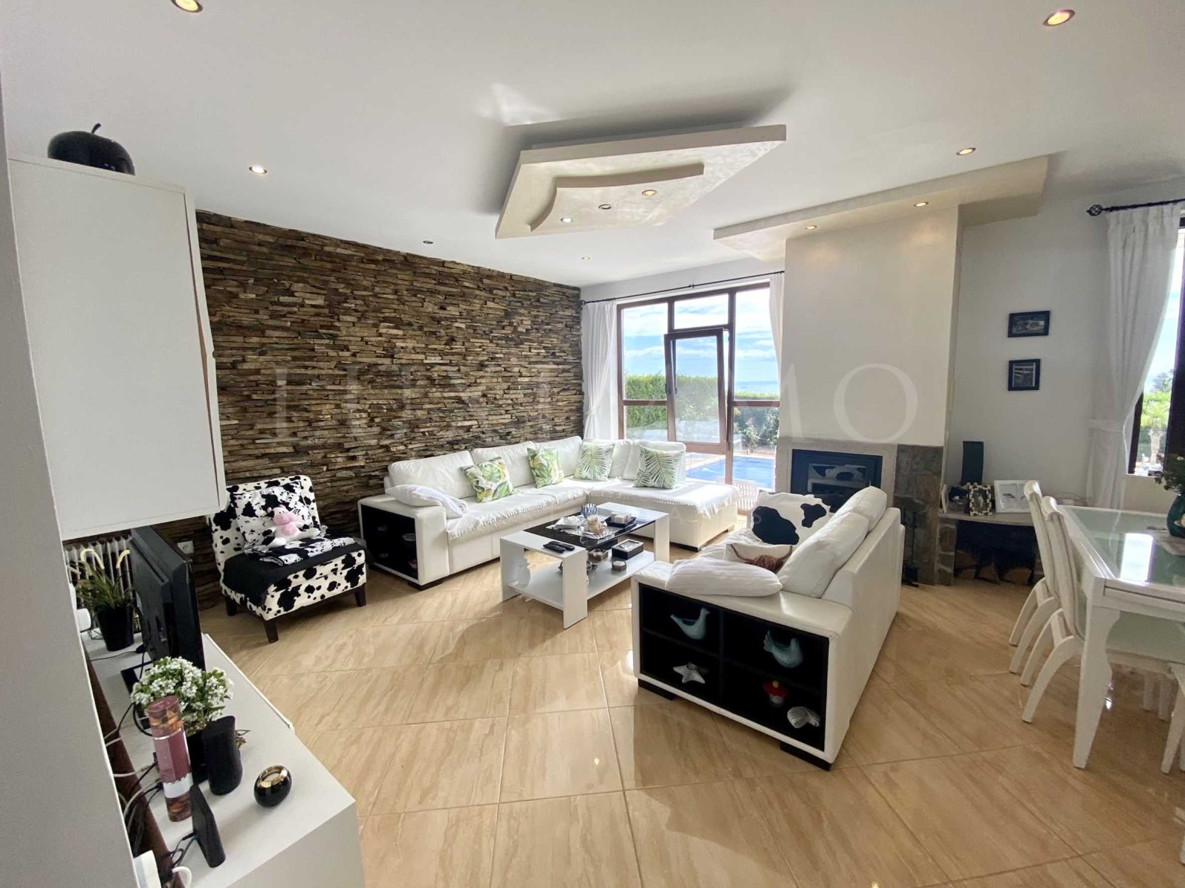 Изложението на имота е изключително благоприятно, като от всяка стая на къщата се разкрива красива гледка към морето. В имота има изградена камина с водна риза за отопление на цялата къща, което го прави подходящ и за целогодишно обитаване.