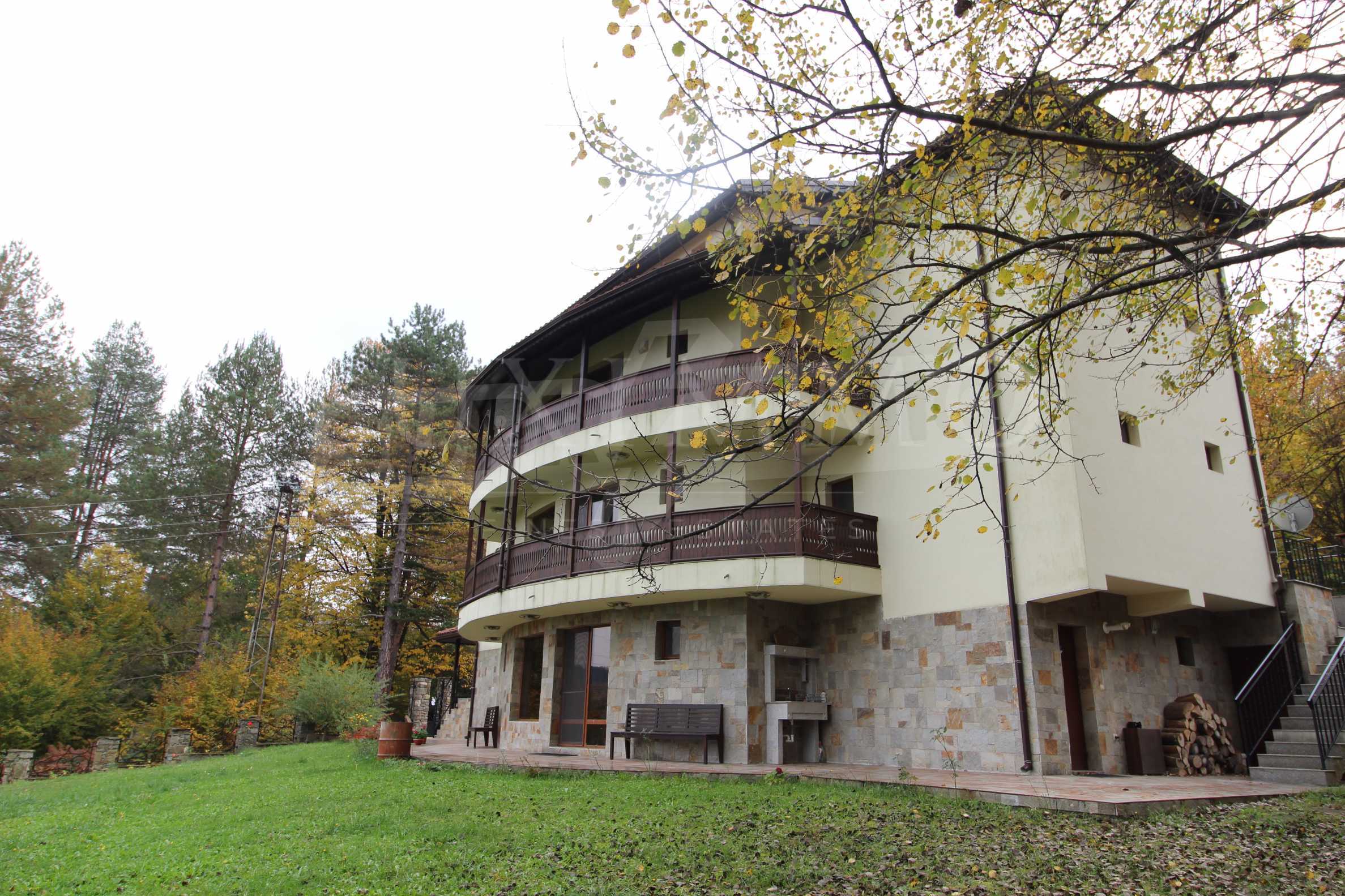 Къщата е построена и въведена в експлоатация преди 6 години, с РЗП 700 кв.м., двор 1,5 дка, на високо панорамно място , с асфалтов път до него, граничи назад с дъбова гора. Последна сграда в населеното място. Много спокойно и отделено място. От там започва черен път през гората. До имота често идват и диви животни като сърни и елени.