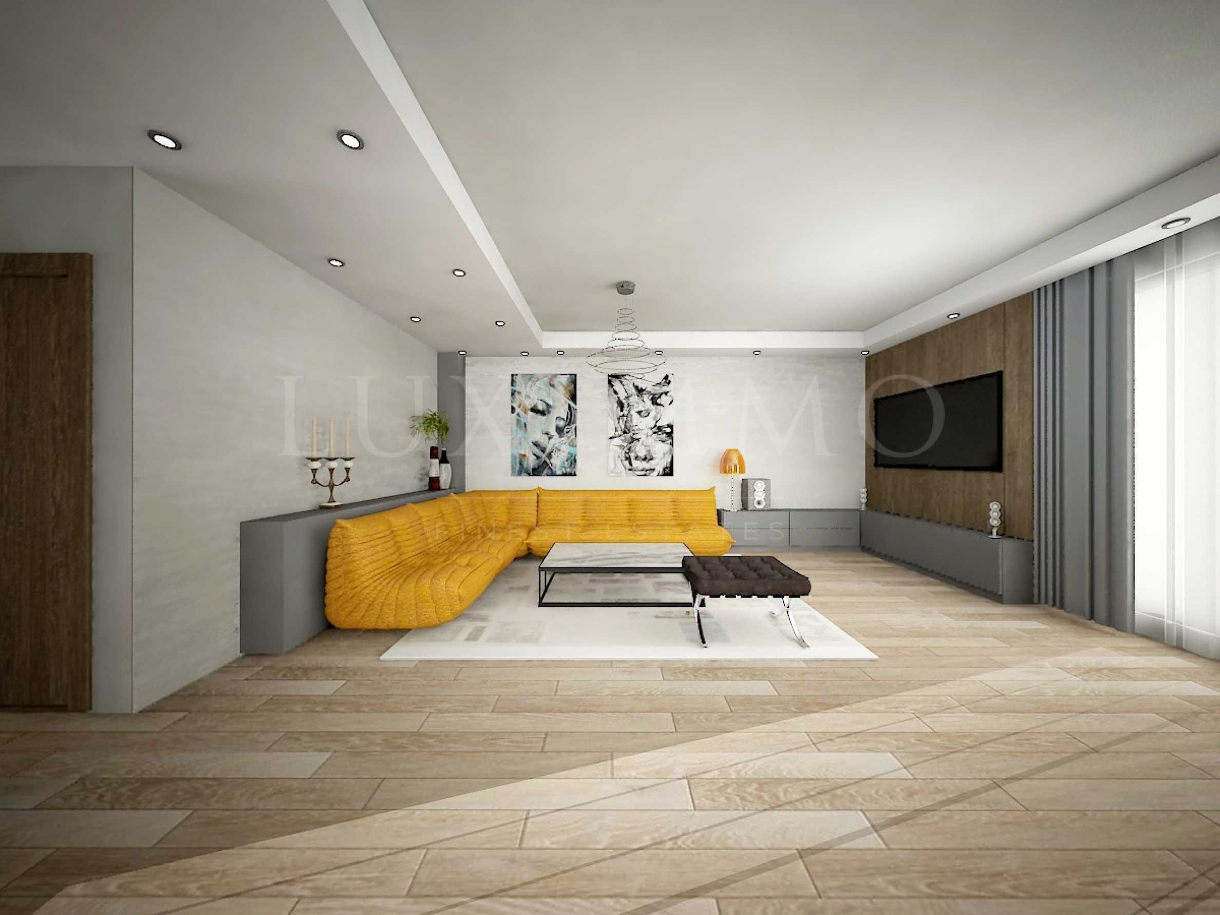 Къщата е с РЗП 250 кв.м, разпределена на две нива, с 600 кв.м двор, с двоен гараж с площ 50 кв.м и възможност за паркиране на улицата. Разполага с просторна всекидневна с кухненска и трапезна част, 3 спални, 3 бани с тоалетна и кабинет.