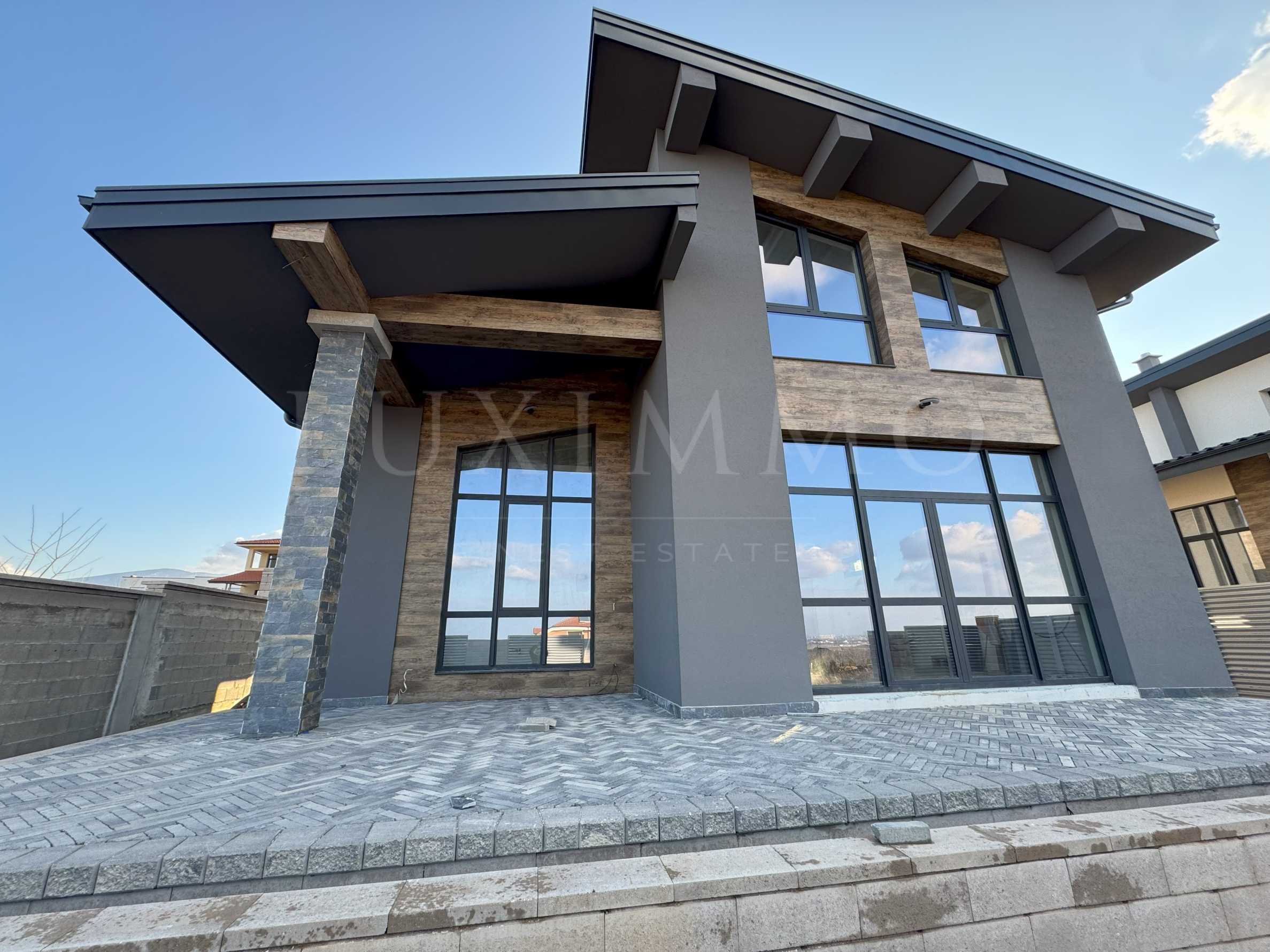 Ексклузивно представяме луксозна smart къща с Акт 15, разположена върху 750 кв.м собствен парцел, с асфалтиран достъп, напълно изградена инфраструктура и уникални гледки.