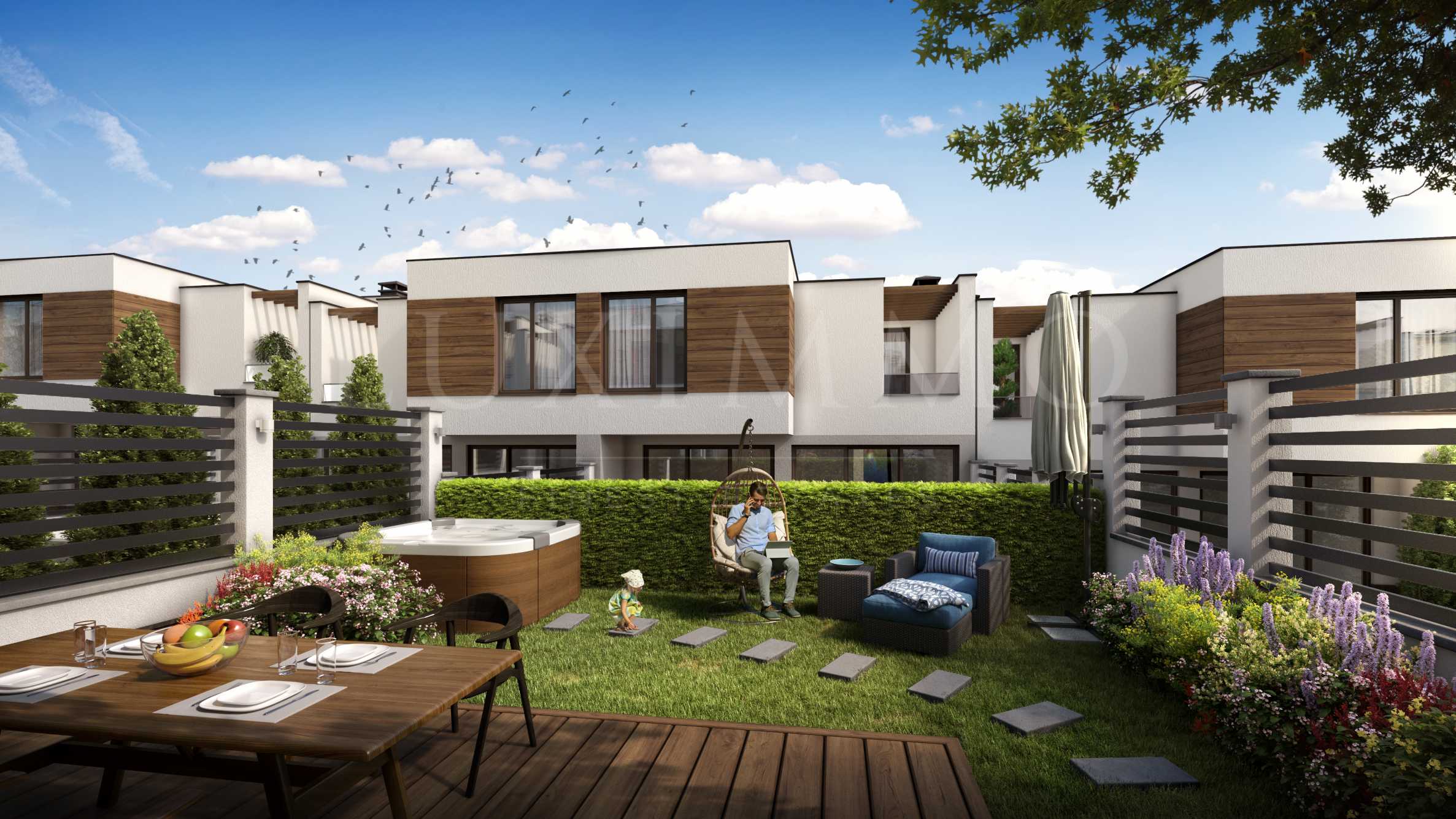 Впечатляващата къща, която Ви представяме за продажба, е част от модерен комплекс с редови къщи, удобно разположен в близост до град Пловдив, в с. Марково. Очаква се проектът да бъде завършен в началото на есента 2022 год.