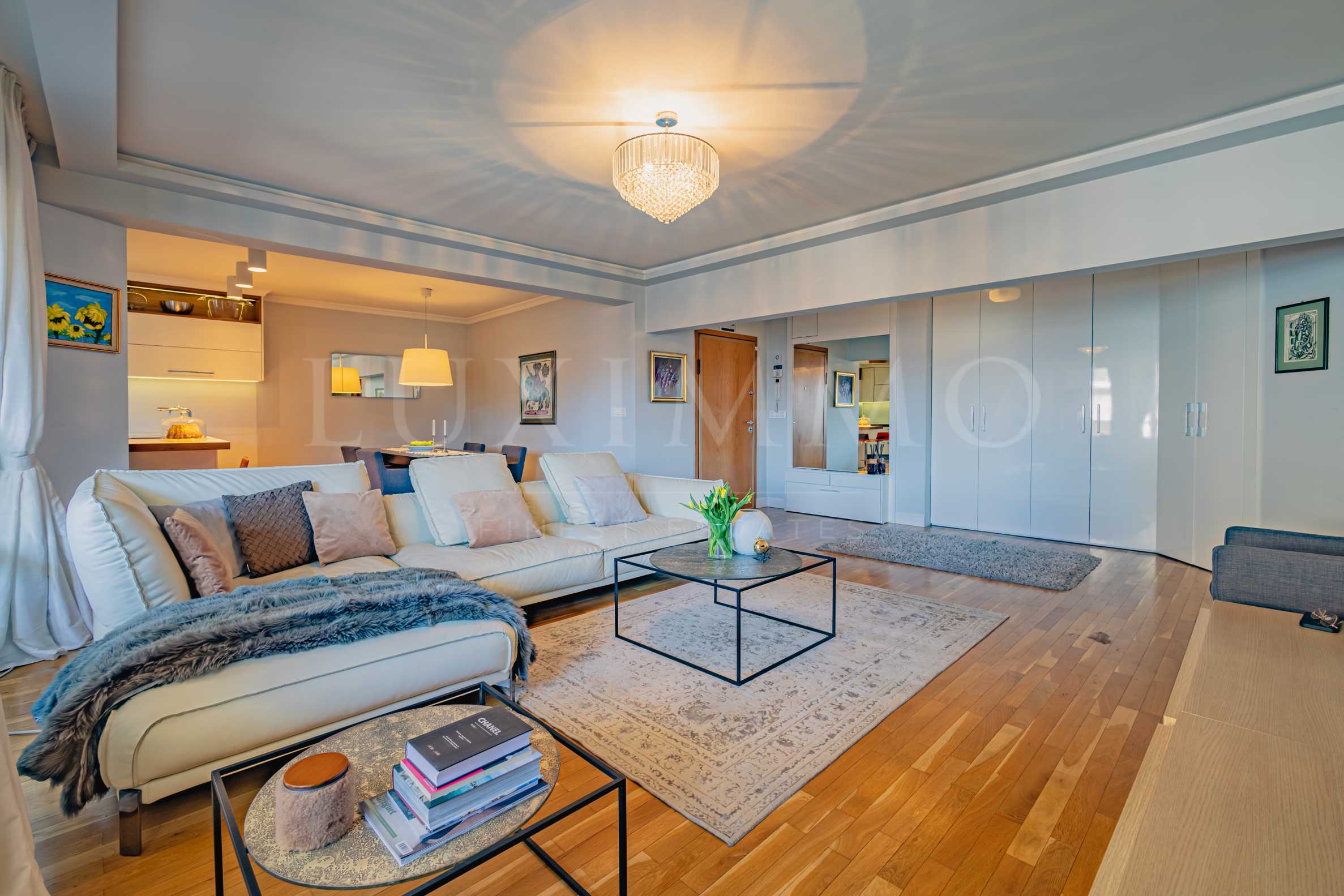 Жилището е решено в светли тонове и разполага с класни поръчкови мебели и висок клас уреди. Ето и част от от вложените материали: