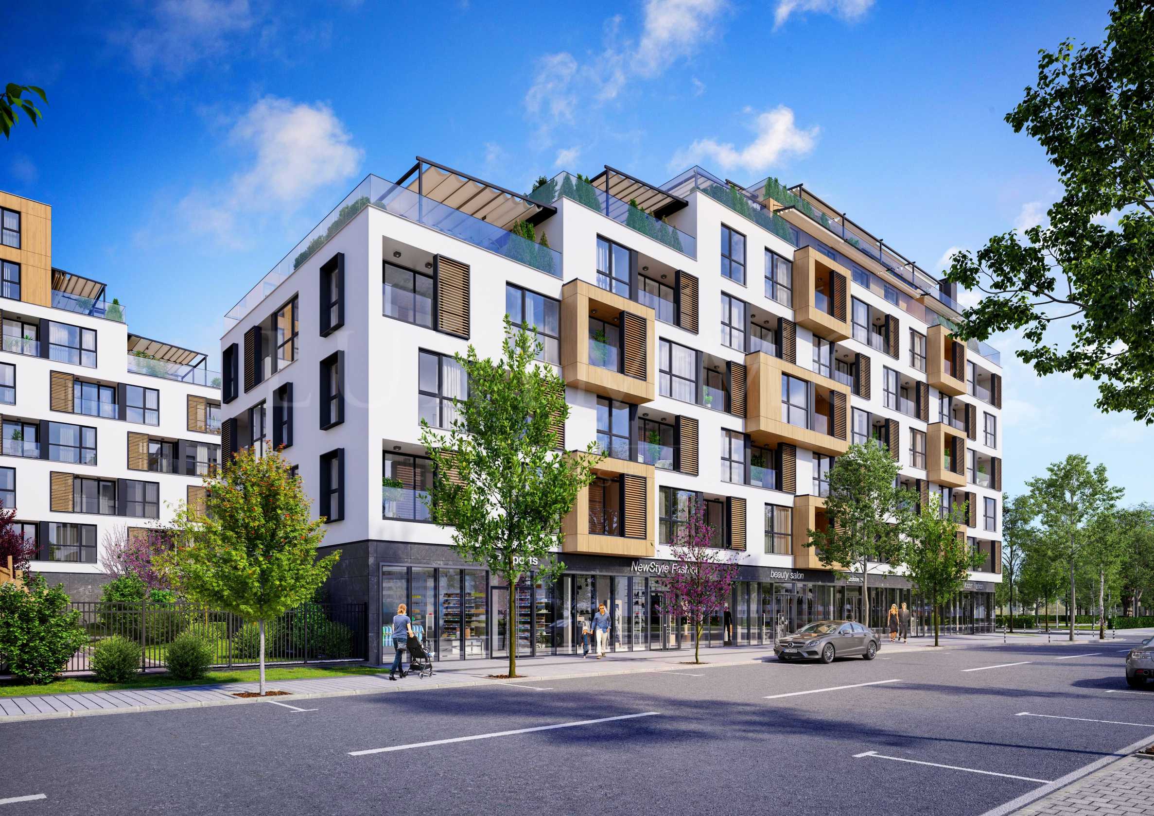 Отличното разположение осигурява оптимален простор и осветеност на жилищата, и оформяне на градина с максимална площ. Входовете и алеите са проектирани така, че да предоставят лесен достъп и връзка с околните пространства. Сградите се отличават с индивидуални архитектурни елементи и големи стъпаловидни тераси, в светли натурални тонове. Апартаментите са разположени на седем жилищни етажа.