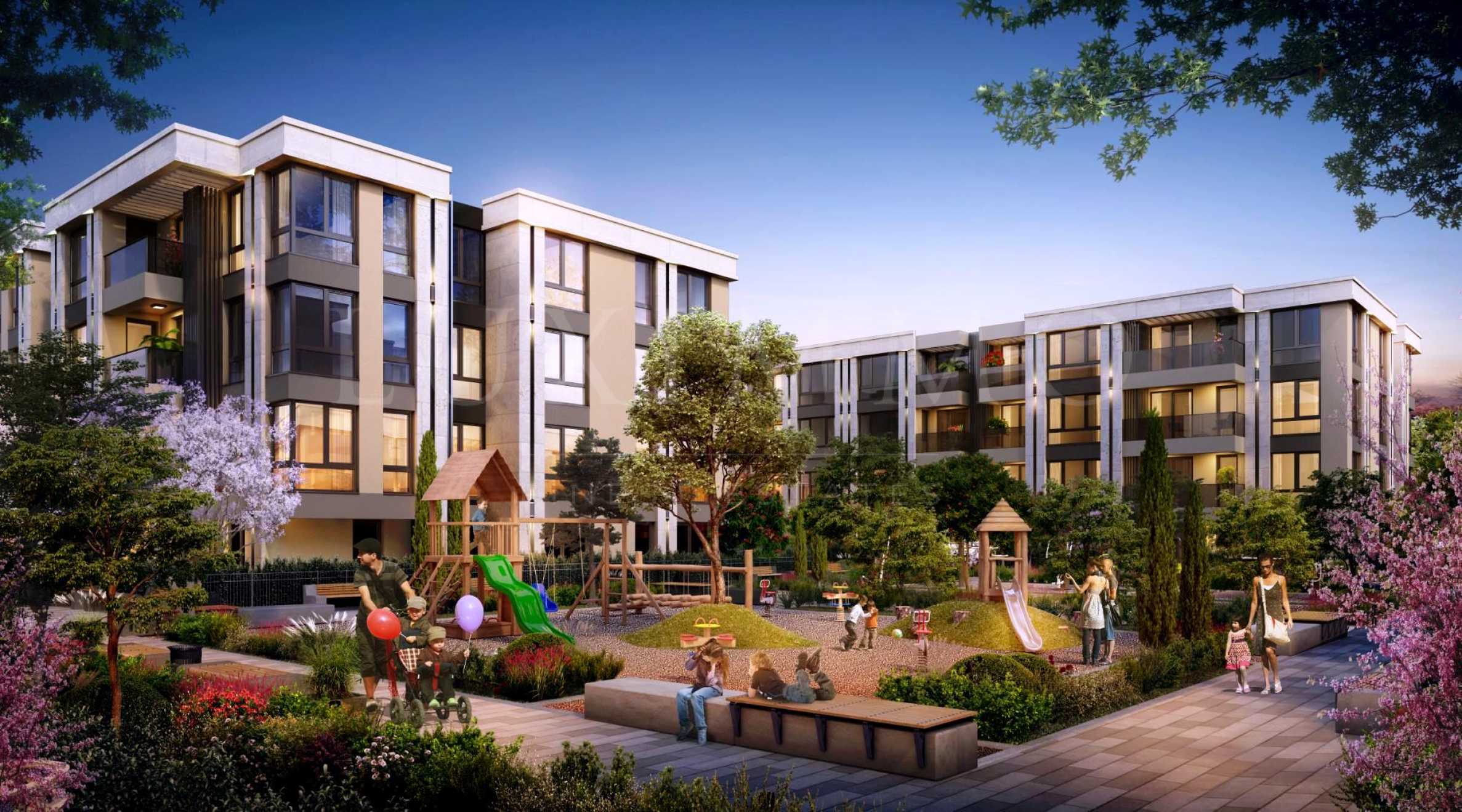 Комплексът се състои от 4 сгради по 4 и 5 етажа, с общо 160 жилища. Сградите са с модерно излъчване, хармоничен и съразмерен дизайн. Открояват се със собствен парк, който ще бъде изграден върху терен от 4000 кв.м, под който няма предвидено подземно паркиране и дървесните видове ще могат да развият кореновата си система свободно. Така във времето градините ще добият красив естествен вид. Този компонент от проектирането за зеленината и връзката с природата е основна част от концепцията. В планирането на прилежащия терен към сградите ще се организира паркирането и достъп на автомобили в периферията на комплекса, така че да се съхрани вътрешността му, където да се развие безопасна и чиста паркова среда.