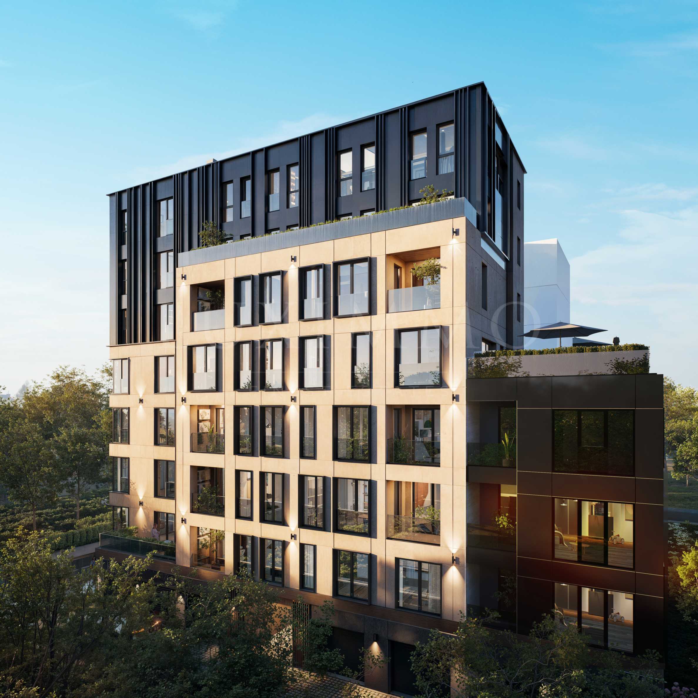 Проектът е замислен с идеята да не изглежда като нищо друго в квартала. Фасадата е вентилируема, с архитектурни детайли, които ще изглеждат актуални и след десет години.