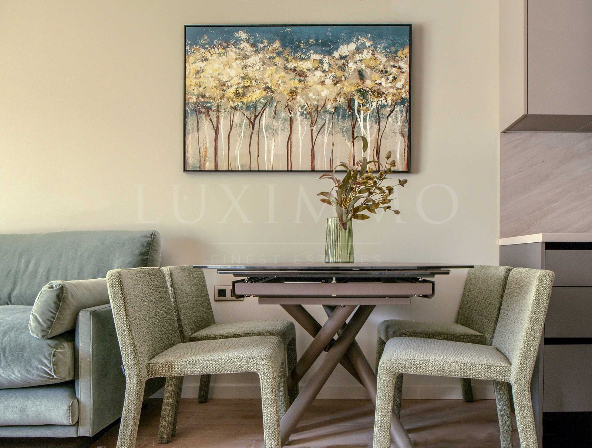 Апартаментът се предлага напълно обзаведен и оборудван с всичко необходимо за живеене, готов за нанасяне или отдаване под наем.