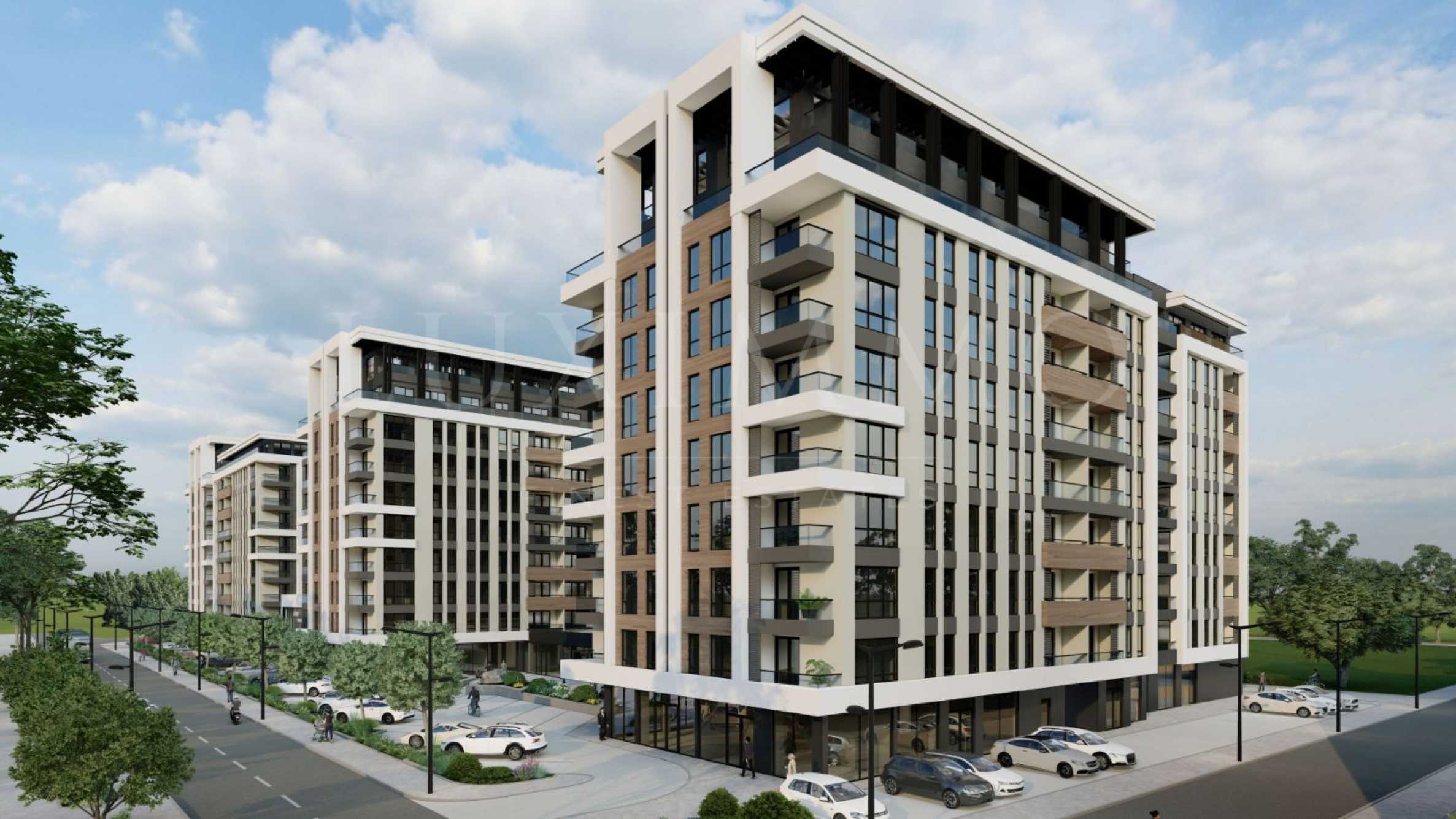 Комплексът разполага с 6000 кв.м озеленени площи, проектирани детски площадки, алейна мрежа с растителност, зони за отдих, площадни пространства. На територията на комплекса ще намерите още търговски комплекс, аптека, дентален център, фитнес, ресторант и голям хранителен магазин, което ще направи живота Ви по-удобен и комфортен. Предлага едностайни, двустайни, тристайни и четиристайни апартаменти. Паркирането е 100% осигурено с надземни и подземни паркоместа, което е удобство за всички жители.