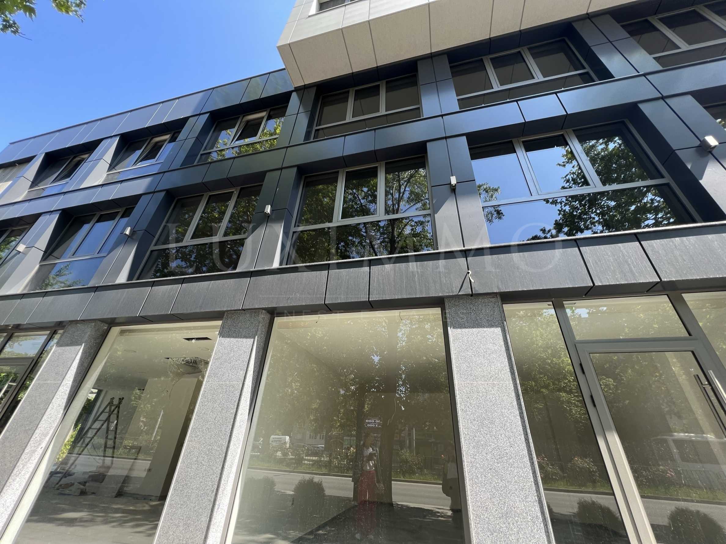Сградата е нова от 2022 г с модерен стил, до спирка от градски транспорт и с голямо лице на оживен булевард.
