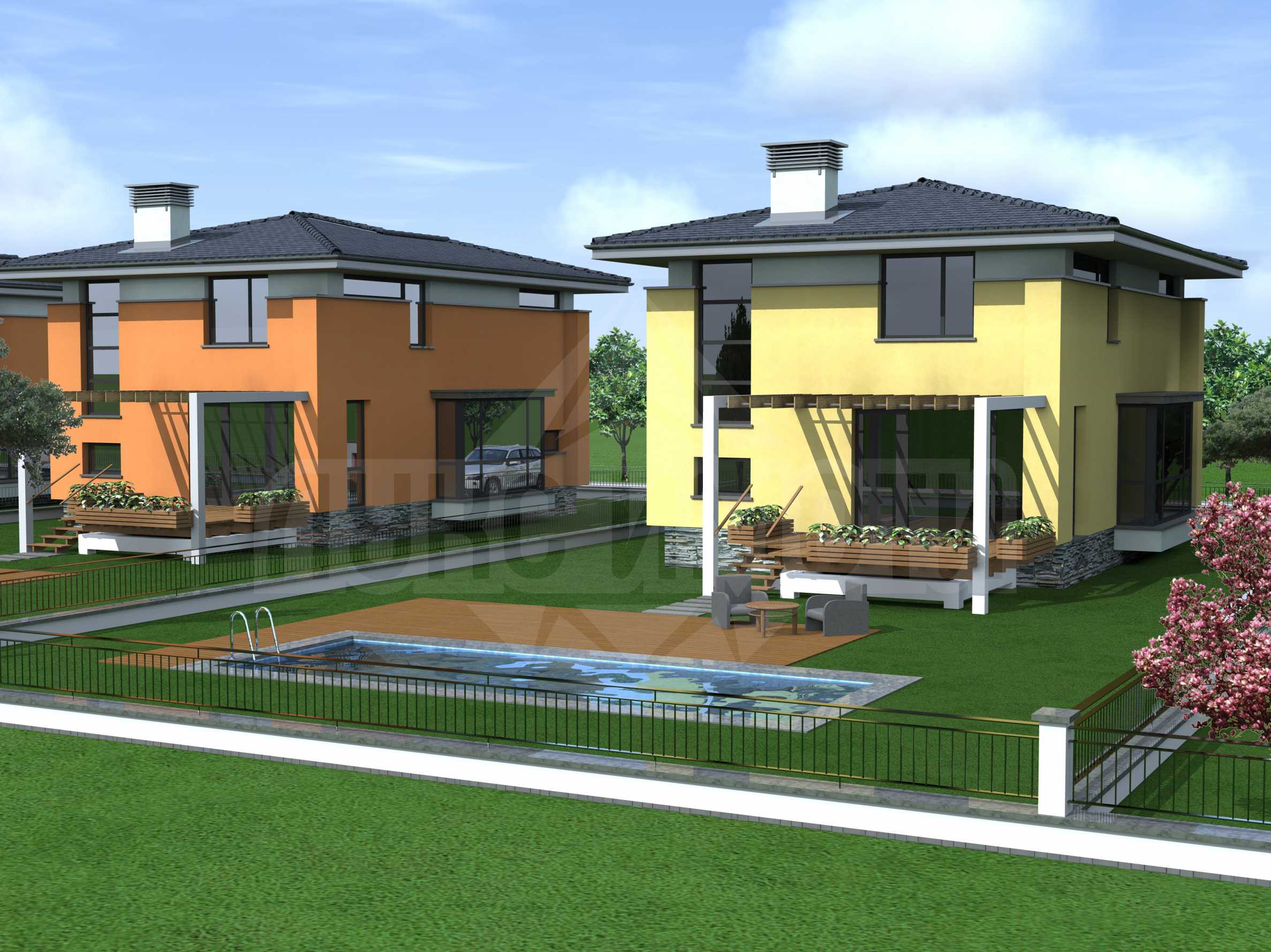 Регулираният парцел от 9500 кв.м. е със сменен статут и идеен проект за строеж на класически комплекс от затворен тип от 14 еднофамилни къщи на един или два етажа. Къщите са напълно отделени една от друга, всяка в собствено УПИ. На 100 метра от парцела е раположен трафопост. Имотът разполага и с вътрешен, 7.5 метра широк път, с обръщало за колите. Асфалтовият път е на 800 метра оттук.