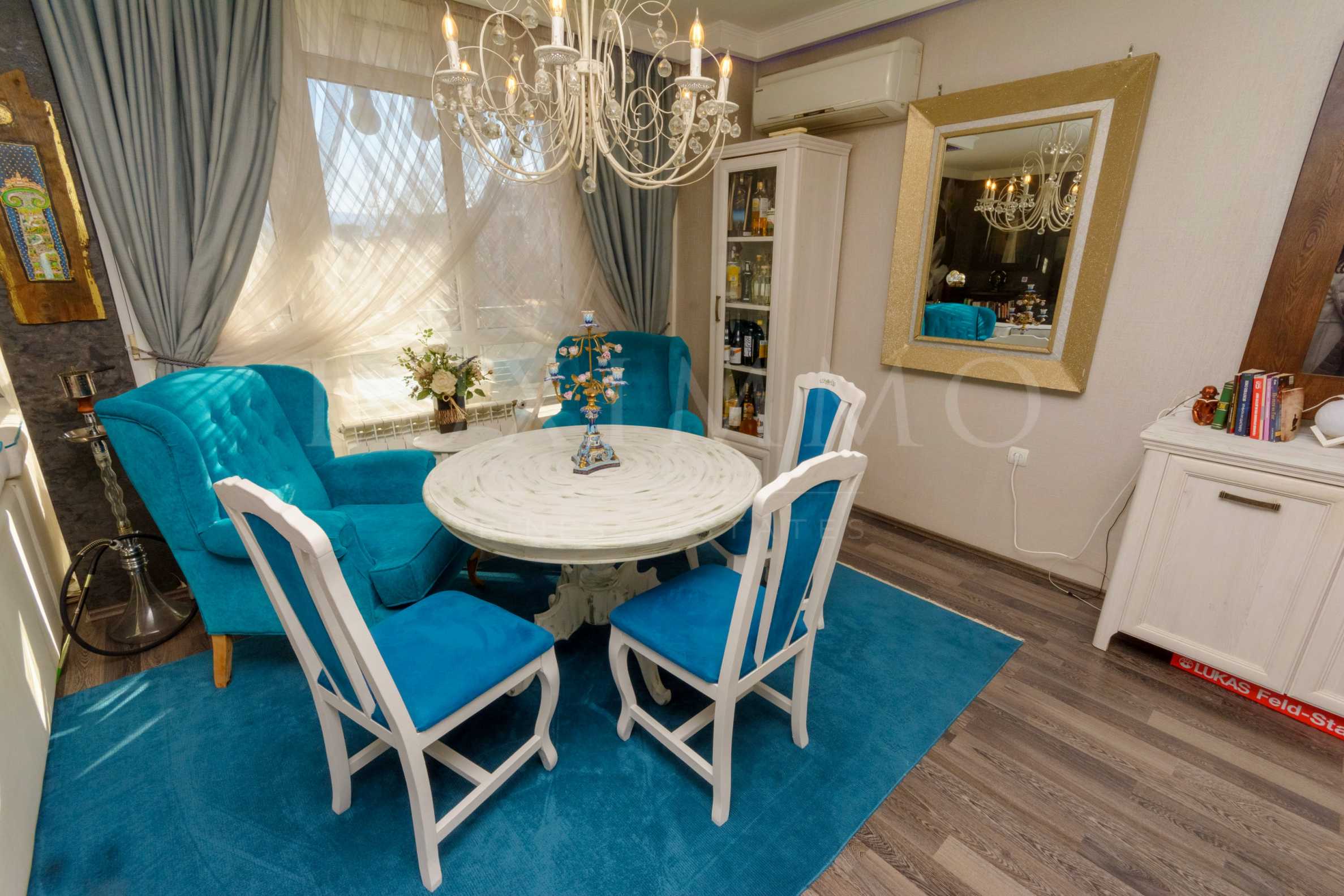 Апартаментът е съобразен по Васто (първоизточника на Фън Шуй), което дава изключително добра хармония и енергия в помещенията. Картините са авторски с растяща стойност във времето. Озвучаването е High-end Harman Cardon and Mission.