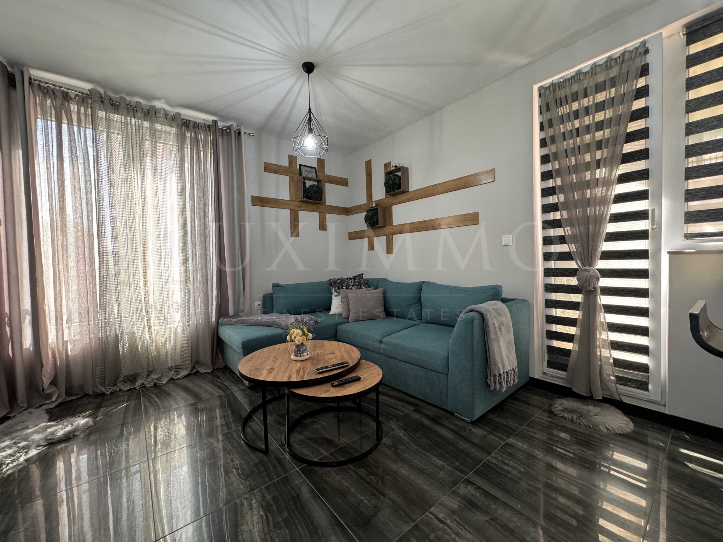Имотът с обща площ от 95 кв.м е разположен на 1-ви етаж в нов затворен комплекс от 2022 г. - истински шедьовър на лукса и архитектурата.