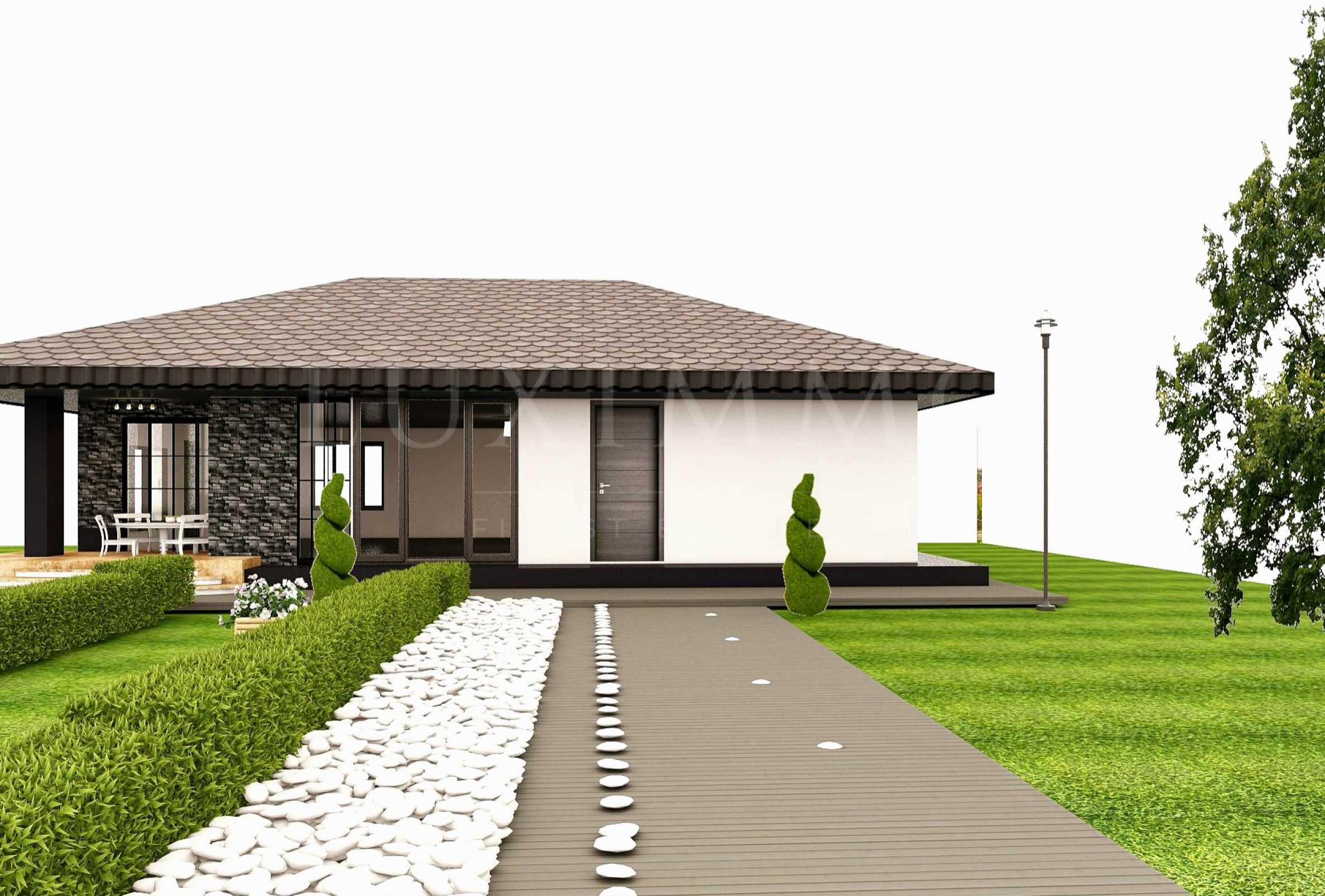 Към парцела има одобрен архитектурен проект за едноетажна къща с РЗП 150,5 кв.м, състояща се от кухня с трапезария, три спални, две бани, гардеробно, мокро помещение и склад. Визията е елегантна, с керамични керемиди, мазилка и цокъл от цепени камъни. В съседния парцел се предвижда изграждане на къща със същата архитектурна линия, ситуирана така, че да не закрива гледката или слънцето.
