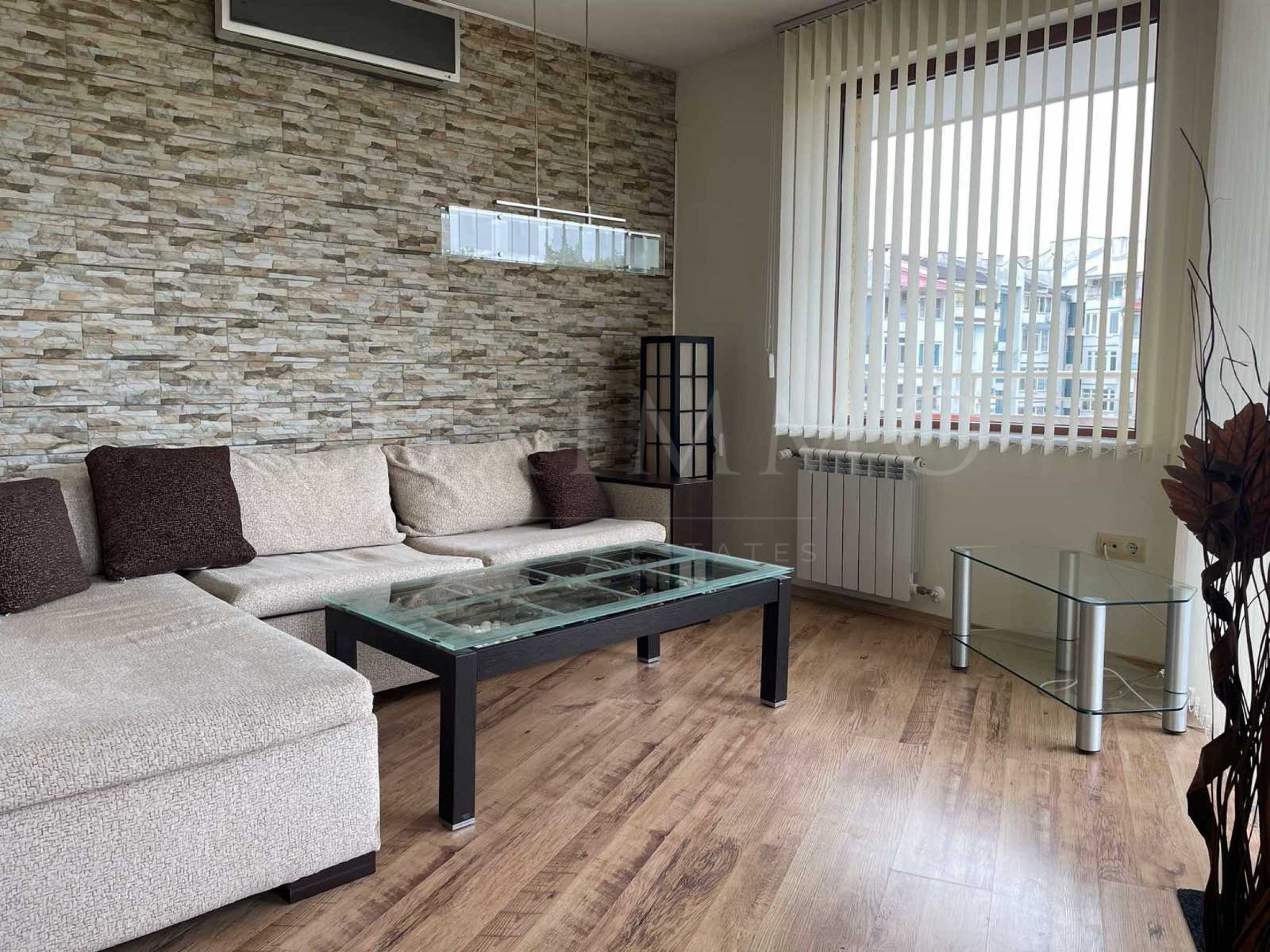 Имотът е с обща площ от 110 кв.м ( нетна площ - 90 кв.м + общи части 20 кв.м). Състои се от дневна с кухня и тераса, две спални, едната от които с блакон, тоалетна и баня отделно. Дневната с кухнята и едната спалня са напълно обзаведени (кухнята е напълно оборудвана). Другата спалня не е обзаведена.