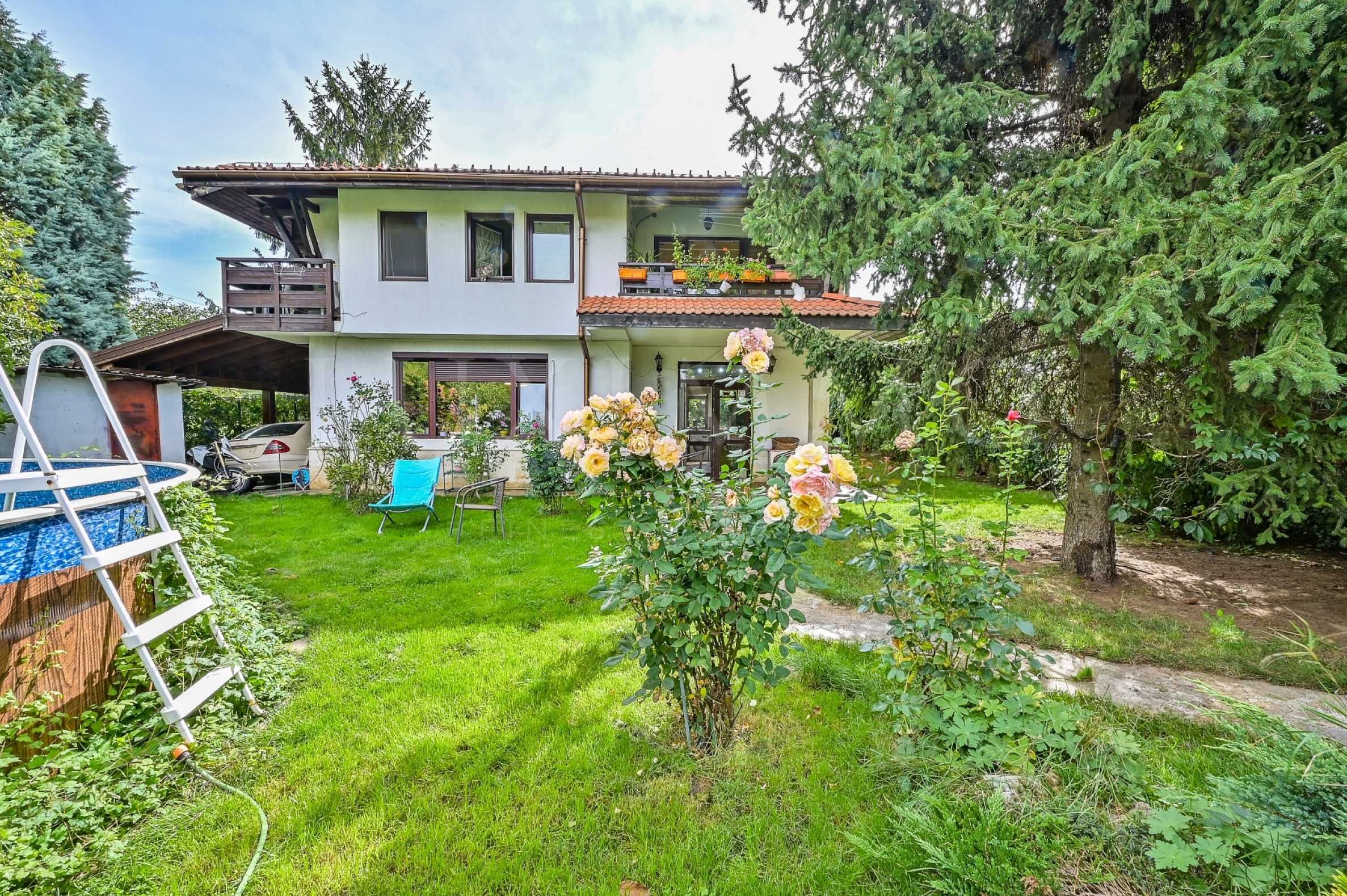 Къщата е с прекрасно озеленен двор, с барбекю и басейн.