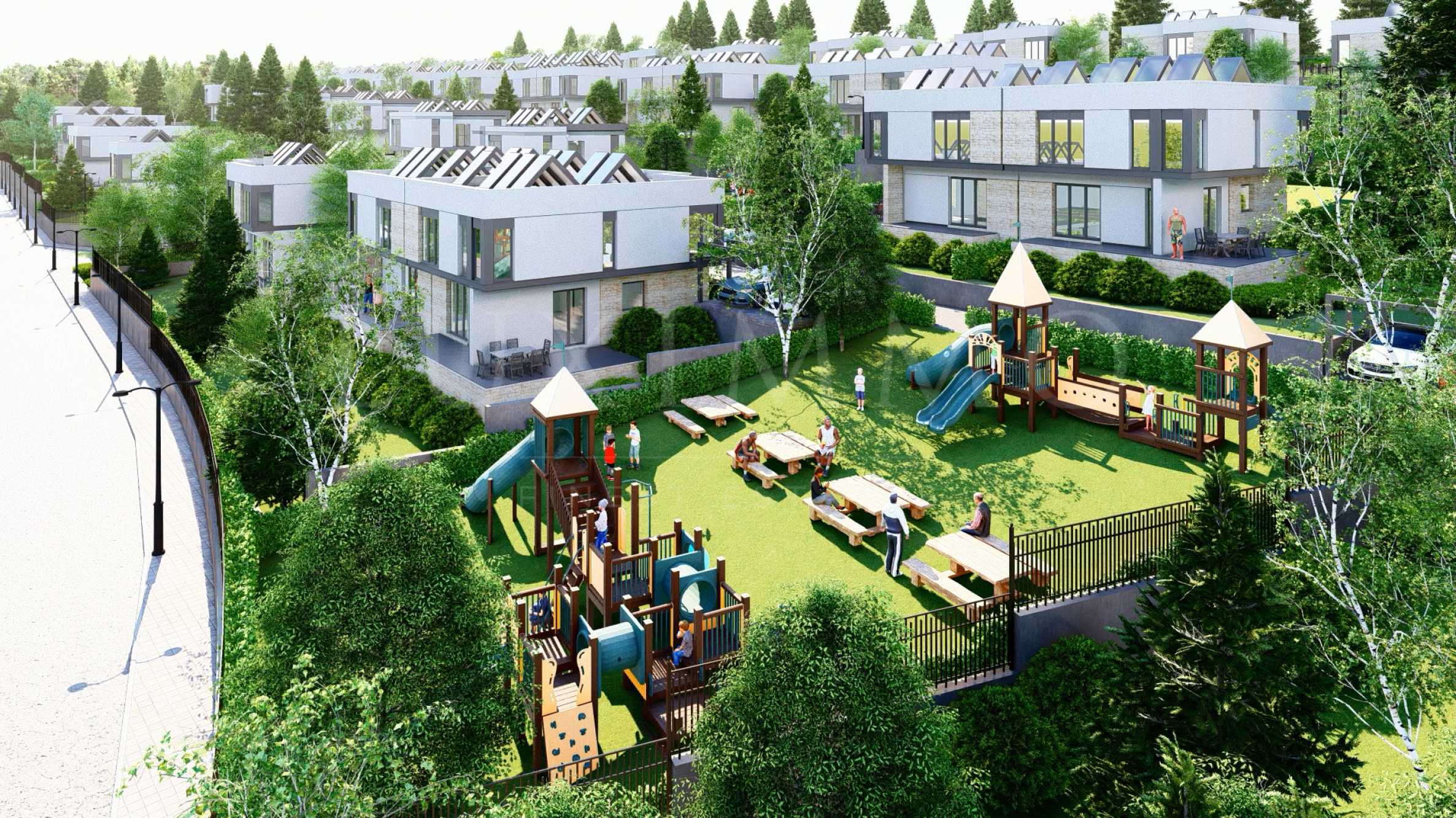 Проектът се състои от 70 кокетни и модерни къщи със самостоятелен двор, обединени в затворен комплекс с контрол на достъпа и отлично планирани общи пространства, отговарящи на най-високите изисквания. Сред осигурените удобства са две детски площадки, игрища за тенис, футбол и баскетбол, както и зони за разходка и пикник.