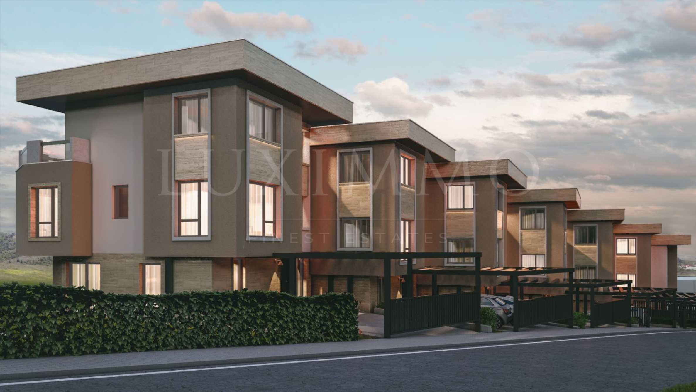 Конкретната оферта е за къща #1, състояща се от три етажа, 4 спални, 4 бани с тоалетна, просторна всекидневна, дрешник, застроена площ- 234, 62 кв. и 2 паркоместа- 47 кв + двор 184, 50кв.м.