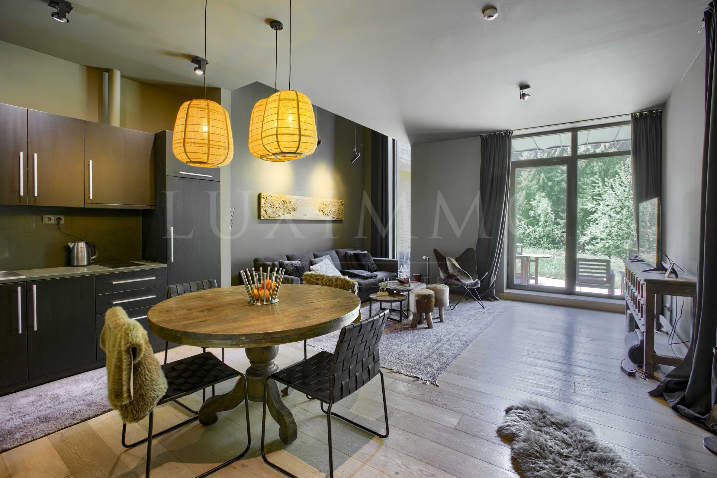 Вилата G001 е построена през 2010 г., а е мебелирана и се използва активно от 2015 г. Материалите и довършителните работи са на най-високо ниво. Сегашният собственик е закупил имота в базов вътрешен вид, след което с известен архитект от Израел е изготвил специален интериорен проект, по който вилата е завършена и обзаведена. Мебелите са луксозни, внос от Италия и Холандия, само от естествени материали, в комбинация от дърво и кожа. Стилът е модерен планински, изцяло съпоставим с най-добрите планински къщи тип "chalet" в алпийските курорти на Западна Европа. Бялата и черната техника са също от висок клас. Всички мебели, техника и аксесоари (с изключение на някои вещи с емоционална стойност за собственика и предмети на изкуството) са включени в цената, като имотът се продава напълно във вида си, представен тук. Цялостното интериорно завършване на вилата в комбинация с внимателно подбраните мебели, аксесоари и елементи от вътрешното пространство правят имота не само модерен, но също и изключително уютен.