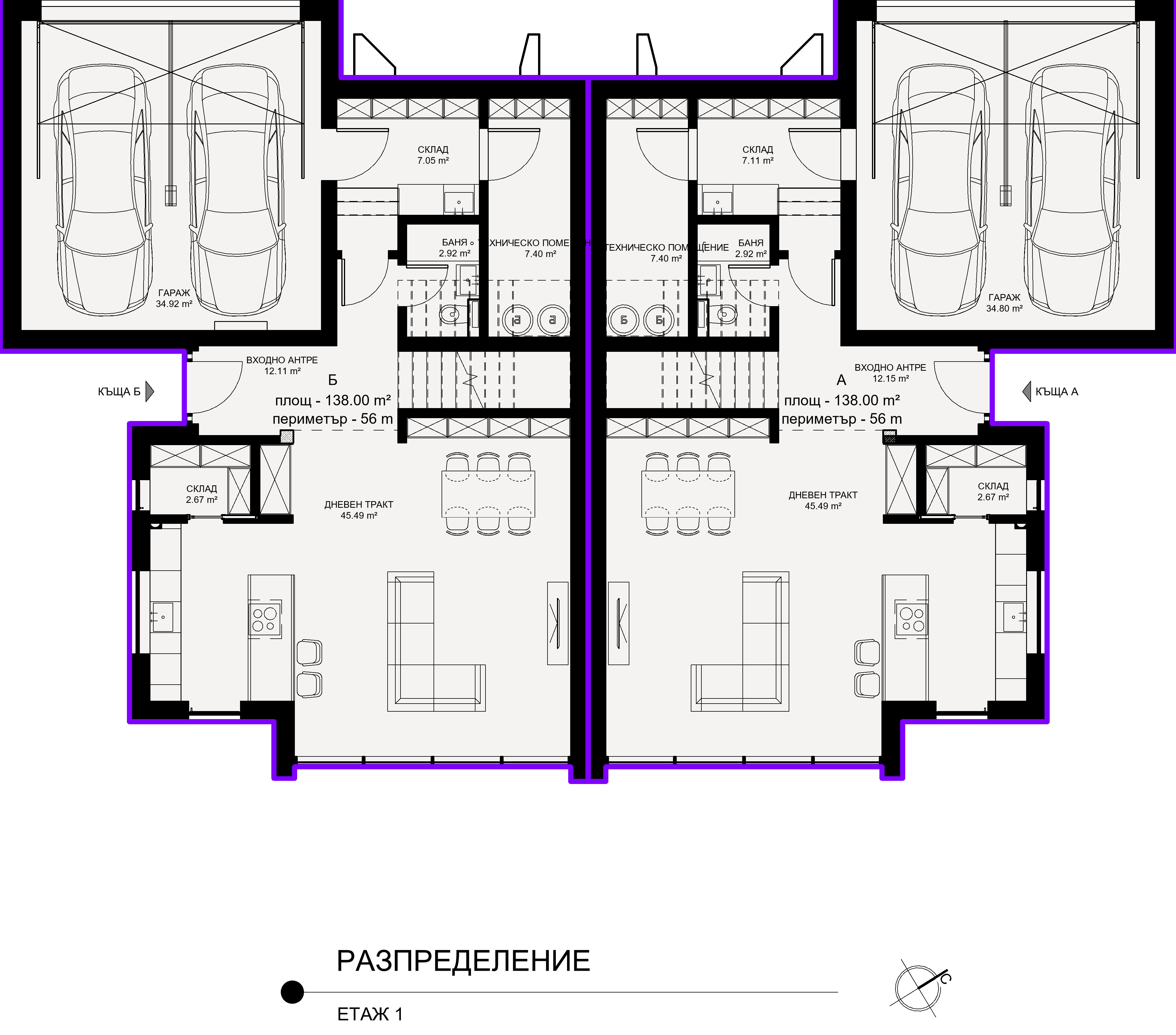 Всяка от къщите е построена с най-високо качество материали, които гарантират комфорт, енергийна ефективност и естетика.