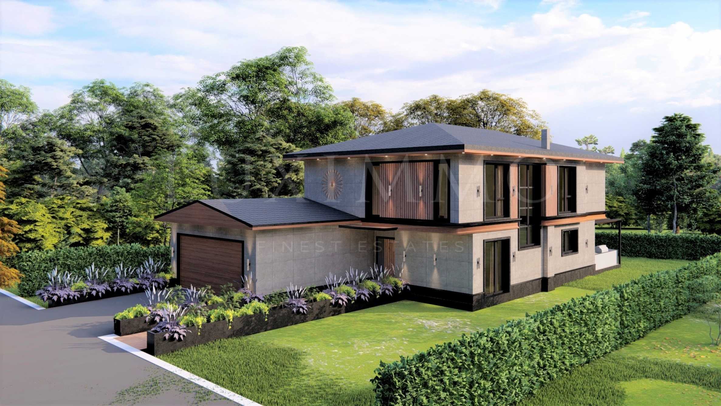 Представяме двуетажна къща с голям двор в новоизграждащ се жилищен комплекс от самостоятелни къщи - единствен по рода си в България. Комплексът се намира до село Лозен, района с чист въздух, на около 13 минути път от София. Разположен е сред природата в полите на Лозенска планина, но в същото време е с удобен транспортен достъп до столицата - до комплекса има спирка на градски транспорт с автобус номер 5, минаващ през 15 минути. На 13 минути път е до Бизнес Парк София и метростанцията, 24 минути до НДК, 3 минути до Околовръстен път, 5 минути до автомагистрала Тракия, 17 минути до автомагистрала Хемус.