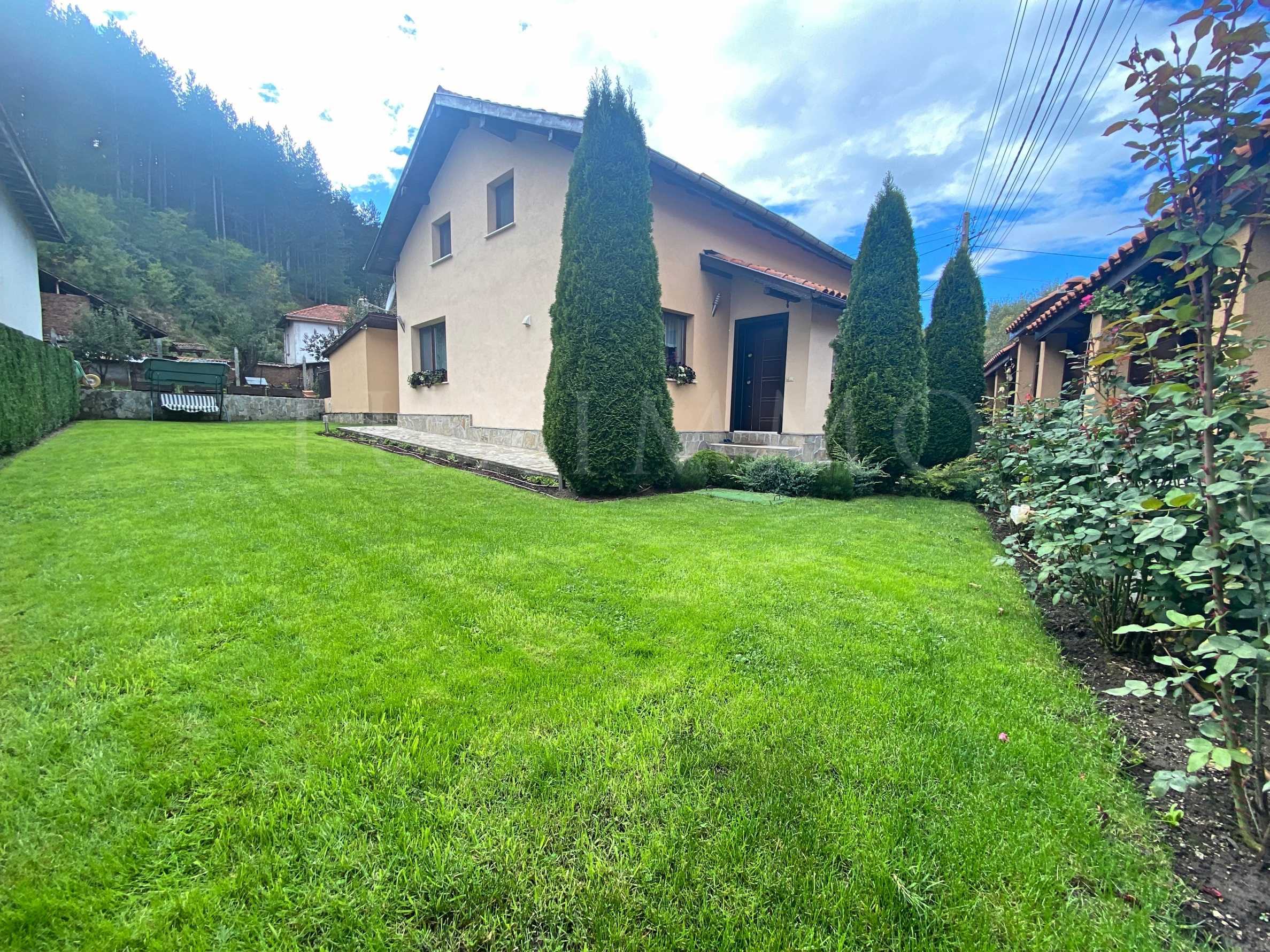 Чудесен модерен дом с обща площ 140 кв.м, на два етажа с дворно място 410 кв.м, разположен на метри от гора и поляни. Парцелът е ъглов, с два входа на две улици и до него се достига по асфалтов път.