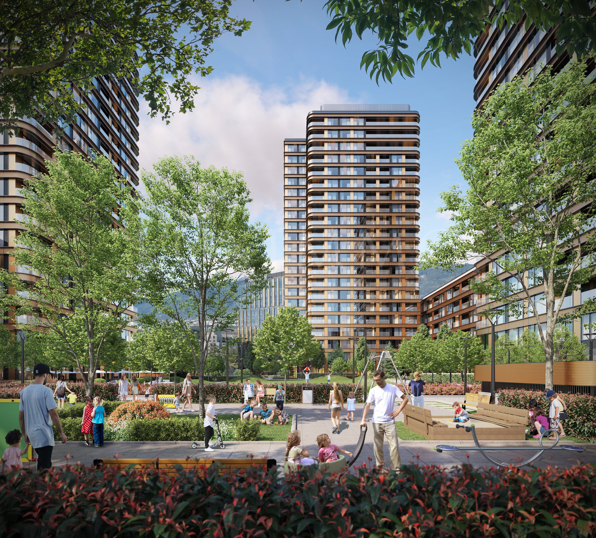Проектът ще бъде изграден съгласно най-високите световни стандарти в модерното жилищно строителство, с безкомпромисно качество, внимание към детайла и висококачествени материали.