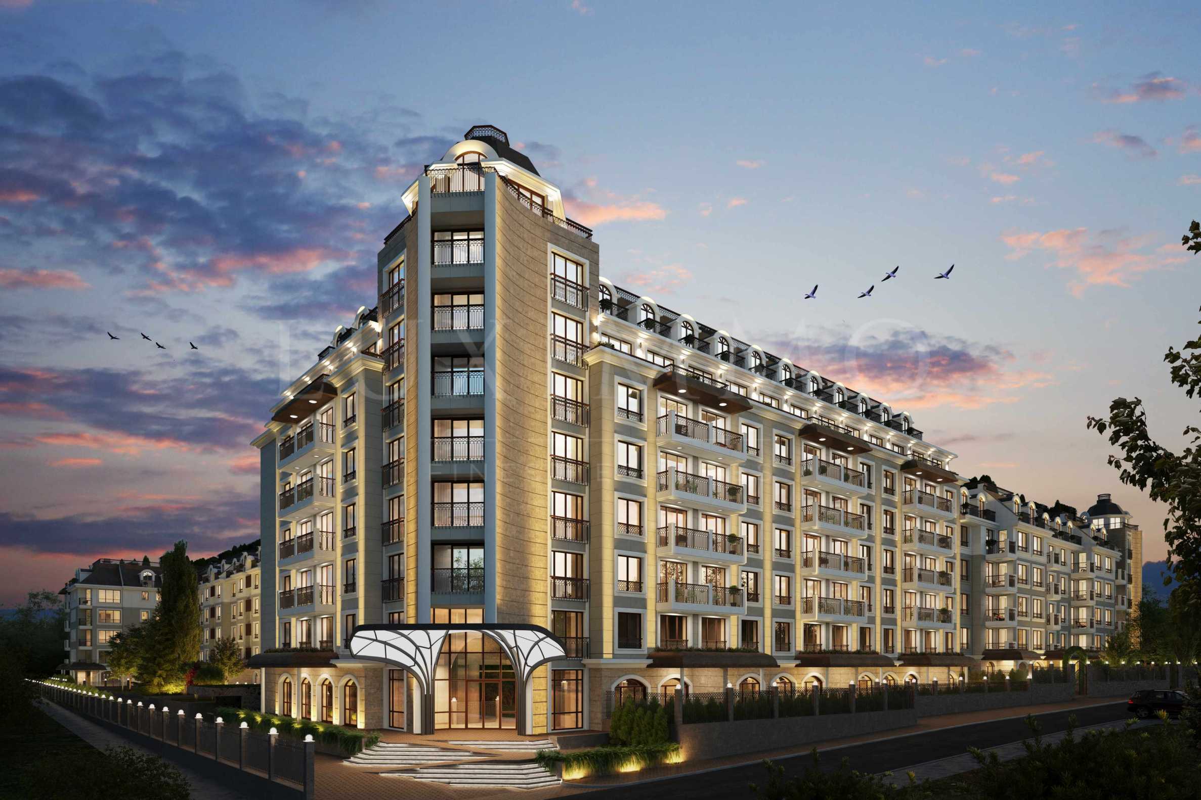 Комплексът разполага още със спа център със закрит плувен басейн и фитнес зала, бистро и рецепция с функции на консиерж, които ще накарат бъдещите собственици да получат своите пълноценни 5-звездни удобства, уют и комфорт на обитаване.