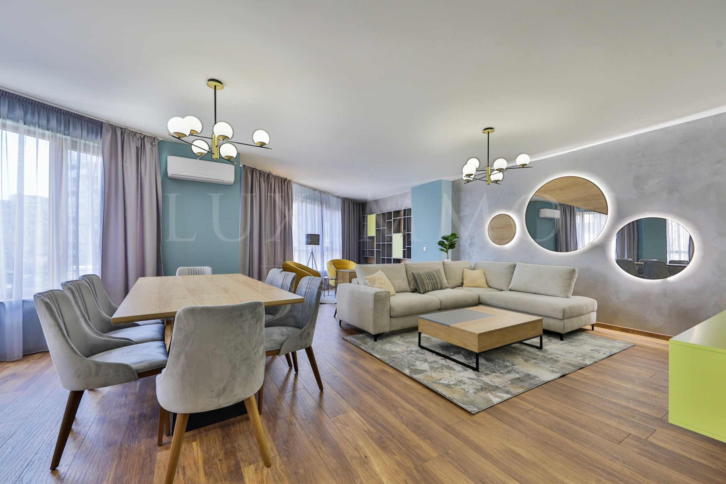 Обзавеждане: Мека мебел; маса за хранене с осем стола; холна маса; ТВ шкаф ; LED “Philips “ кресла; вградена кухня; хладилник „Electrolux ”; фурна „AEG”; котлони „Electrolux”; абсорбатор „Faber”; съдомиялна „AEG”; вградени гардероби; легла с матраци; нощни шкафчета; бюро; пералня „Electrolux” ; сдомиялна „Electrolux ” ; климатици „Mitsubishi”; осветителни тела и др.