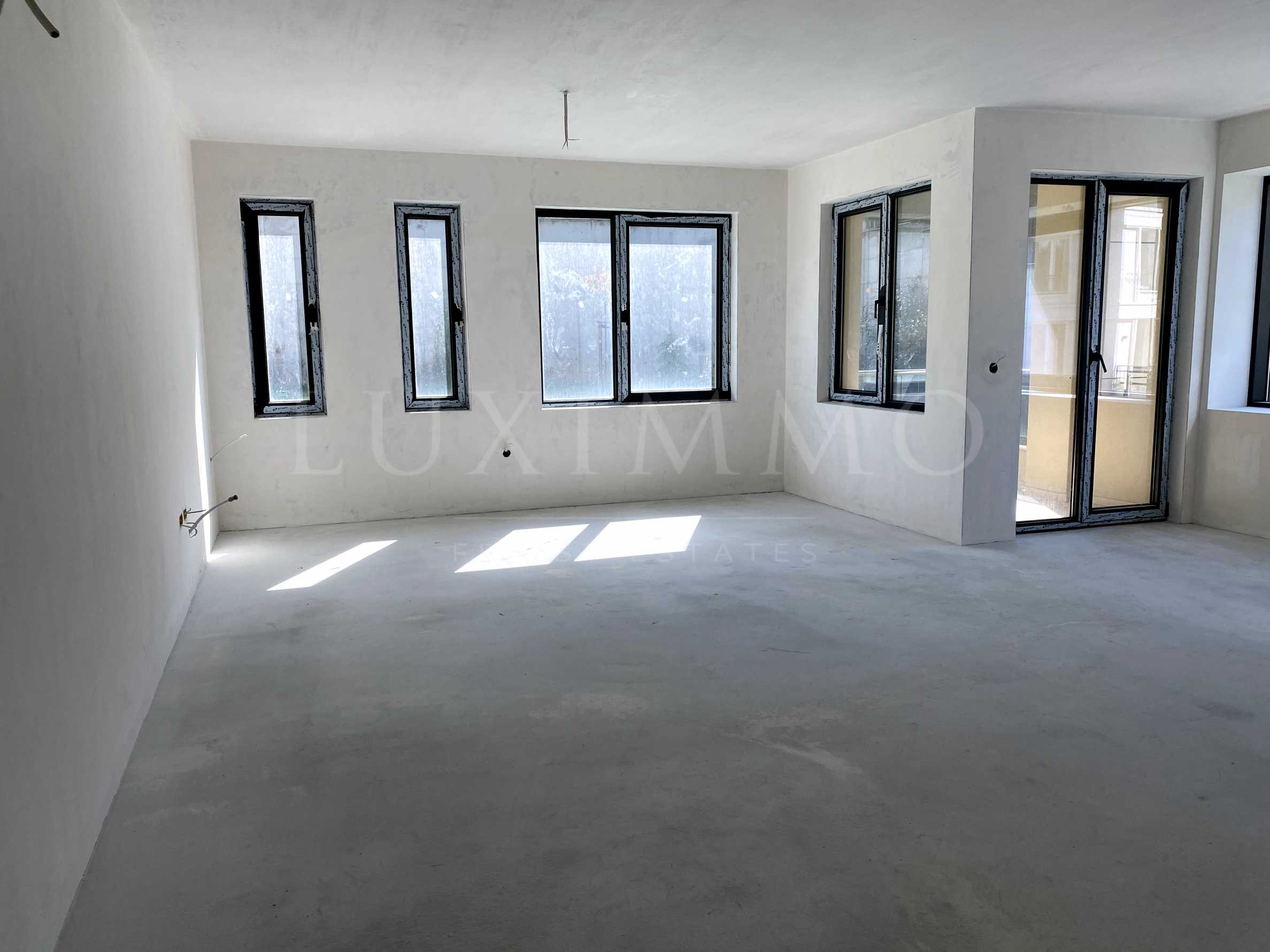 Имотът е разположен на 1-ви етаж, над партер, ориентиран е на юг, запад и север, и предлага 213.90 кв.м обща площ. Състои се от антре, всекидневна с площ 42.94 кв.м с излаз на тераса, отделна кухня, тоалетна, коридор с баня с тоалетна и склад, спалня със собствена баня с тоалетна, дрешник и излаз на тераса, и още две спални.