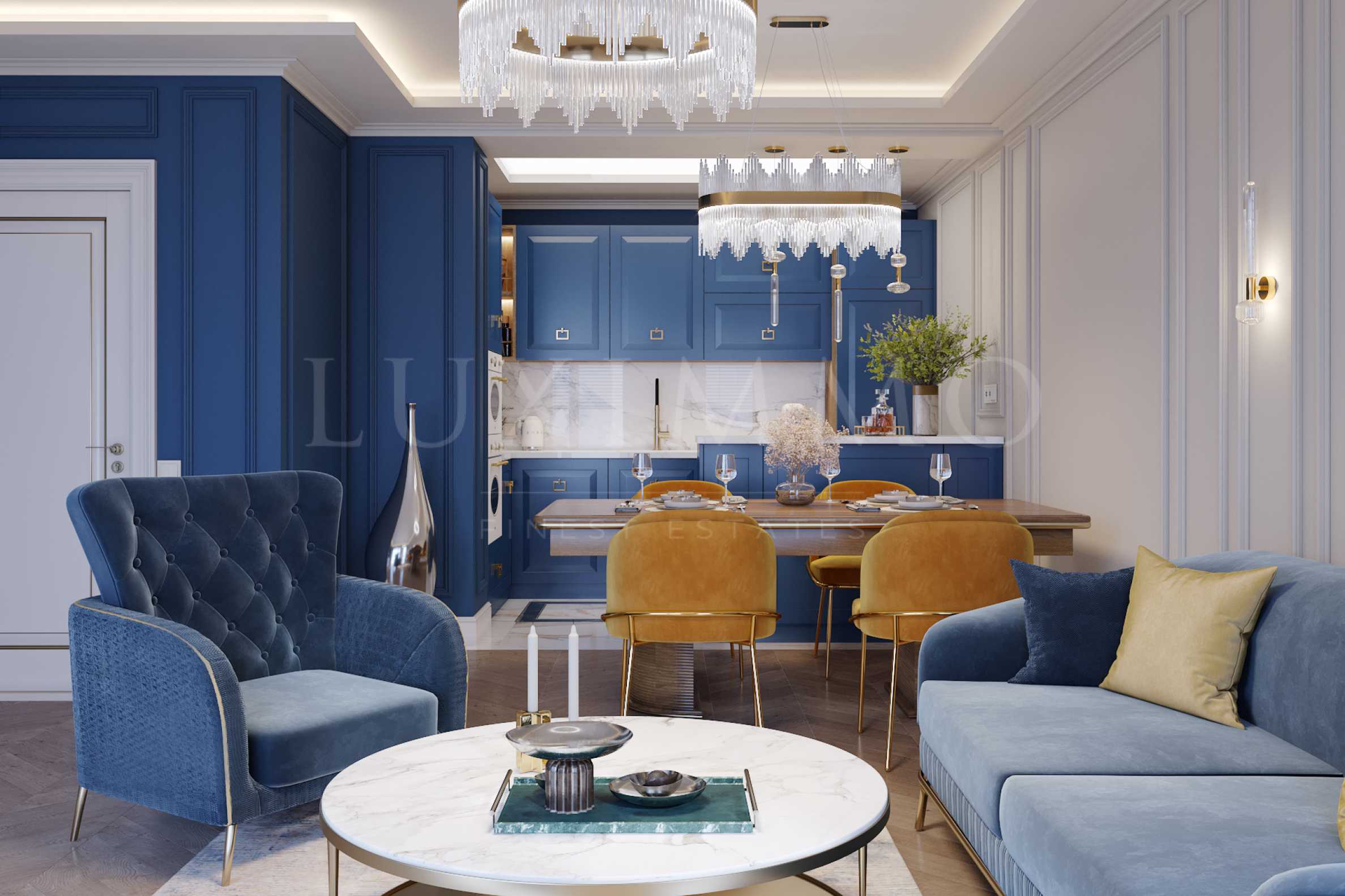 Интериорът е решен в бляскав стил, с елегантни и функционални решения, вдъхновен от "Великият Гетсби".