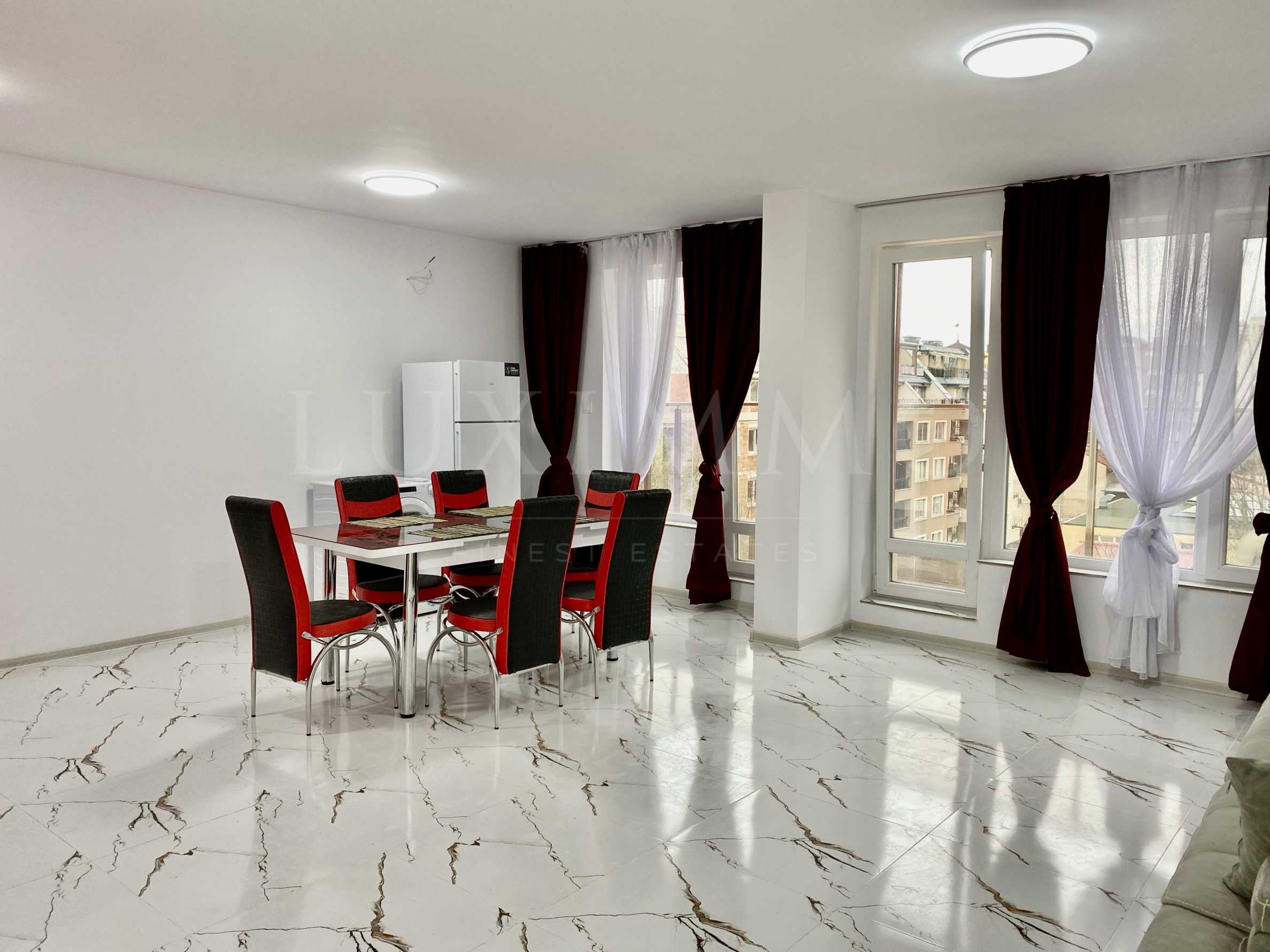 Жилището е разположено на 6-и етаж от общо 8 и се състои от три спални, две бани, много просторна и светла всекидневна, която разполага с функционална кухня с вградени уреди.
