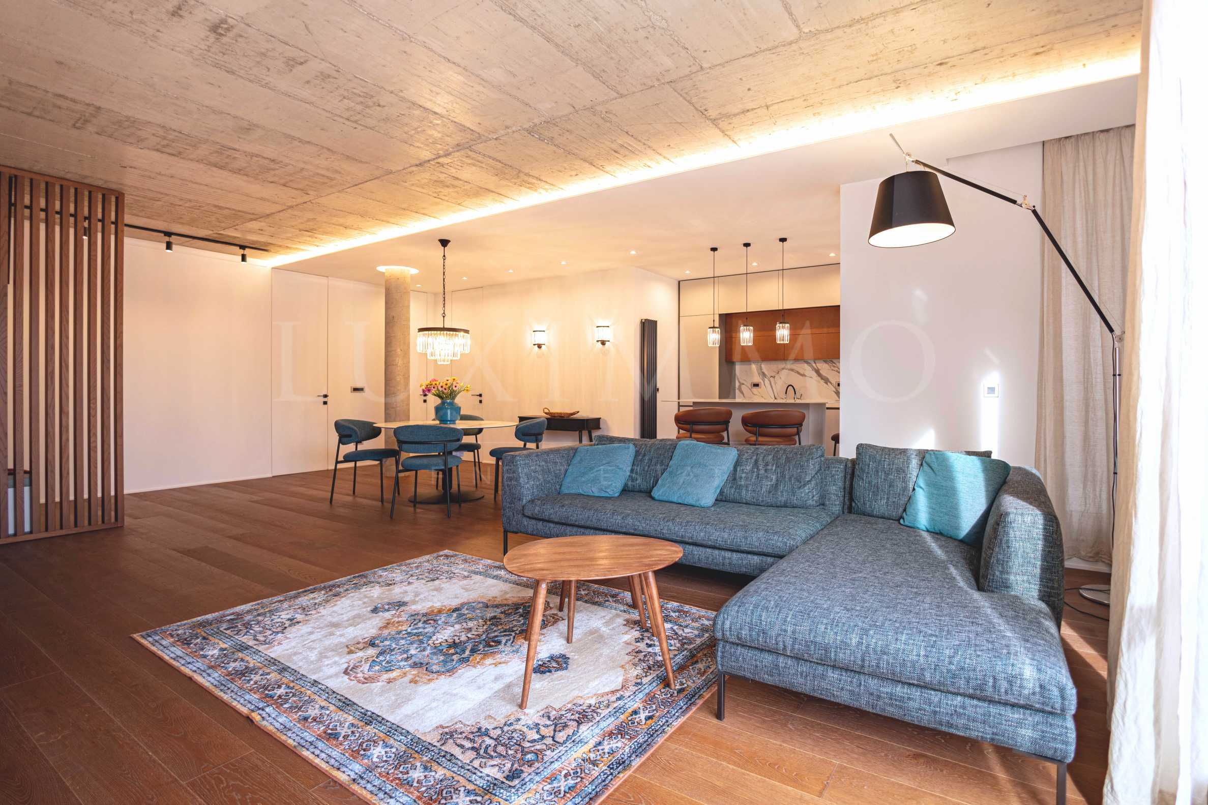 Жилището заема втори етаж от четириетажната сграда. Имотът е 178 кв.м с идеалните части. Изложението е изток/запад, с релаксиращи гледки към вътрешния двор и Витоша. Мезонетът се откроява с висококачествено изпълнение на довършителните работи: