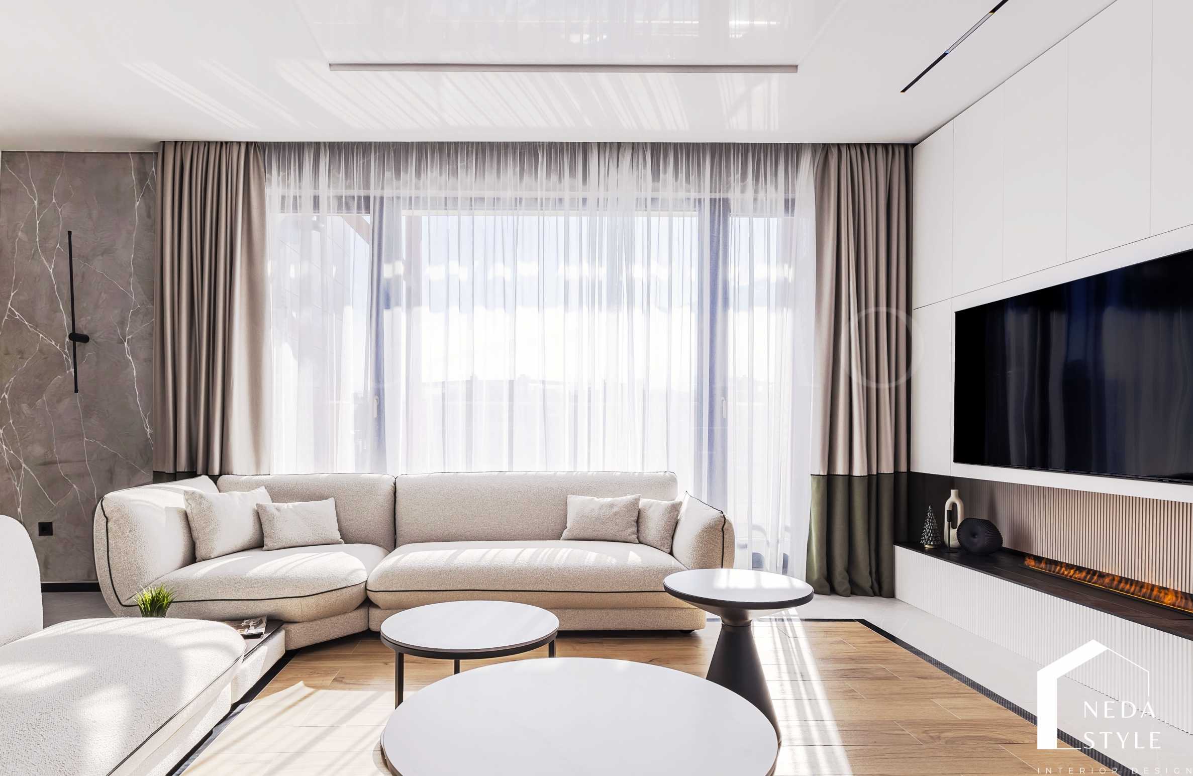 Настилките в жилището са изпълнени с висококачествен италиански гранитогрес Marazzi с монтирано подово отопление на газ. За комфорта на наемателите са предвидени климатици Daikin и smart телевизори във всяко помещение, Velux щори с дистанционно управление, декоративно осветление, оборудвано мокро помещение, резервен бойлер.