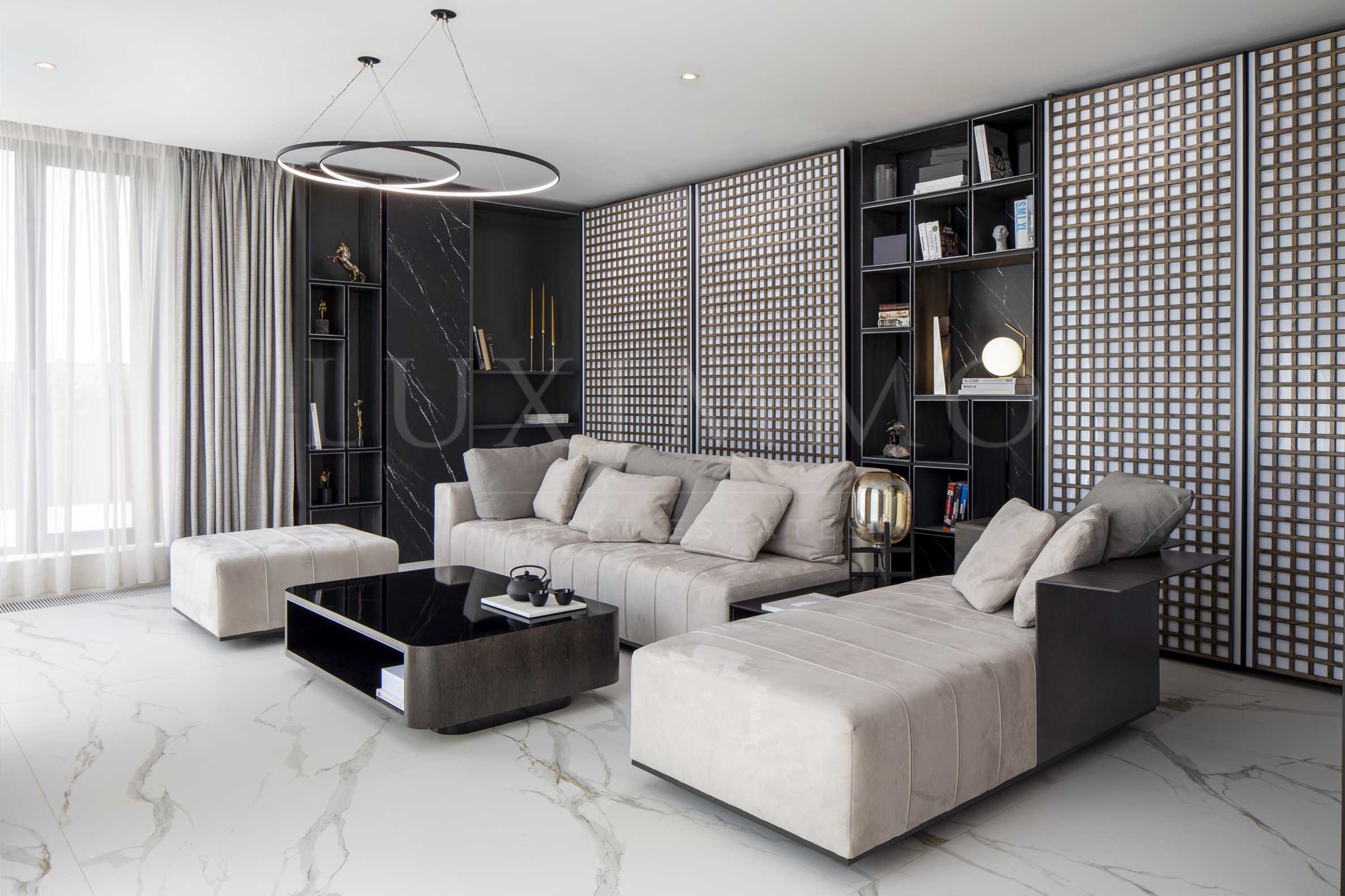 Апартаментът е замислен и проектиран с внимание към най-малкия детайл, като изпълнението му е по индивидуален дизайнерски проект. Предлага се напълно обзаведен с поръчкови и дизайнерски мебели - италианска мека мебел, столове и осветителни тела. Кухнята е оборудвана с уреди на марките Miele, Liebherr и Bosch. Имотът разполага със сауна Harvia, надуваемо джакузи и външен душ.