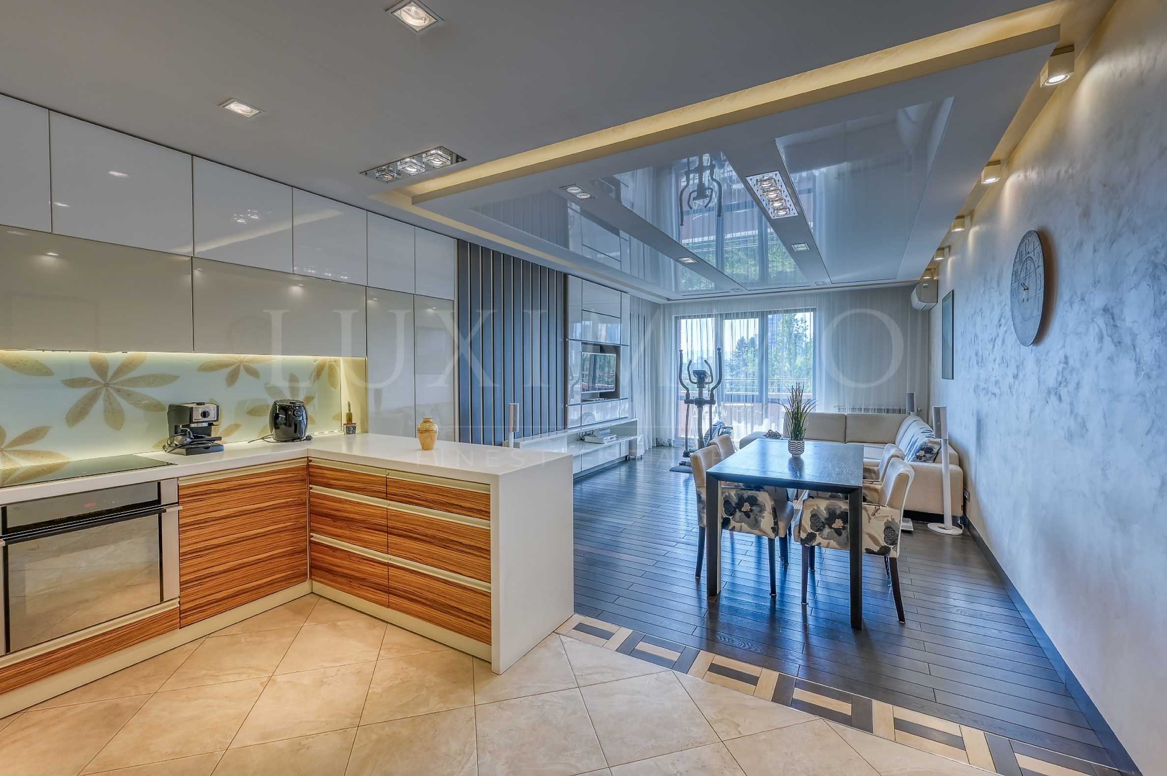 Апартаментът е завършен по индивидуален дизайнерски проект, като са използвани висококачествени материали и уреди. Сред тях са пералня и сушилня Miele, система за домашно кино Harman Kardon и дистанционно управляемо осветление в дневната, което допринася за усещането за лукс и удобство.