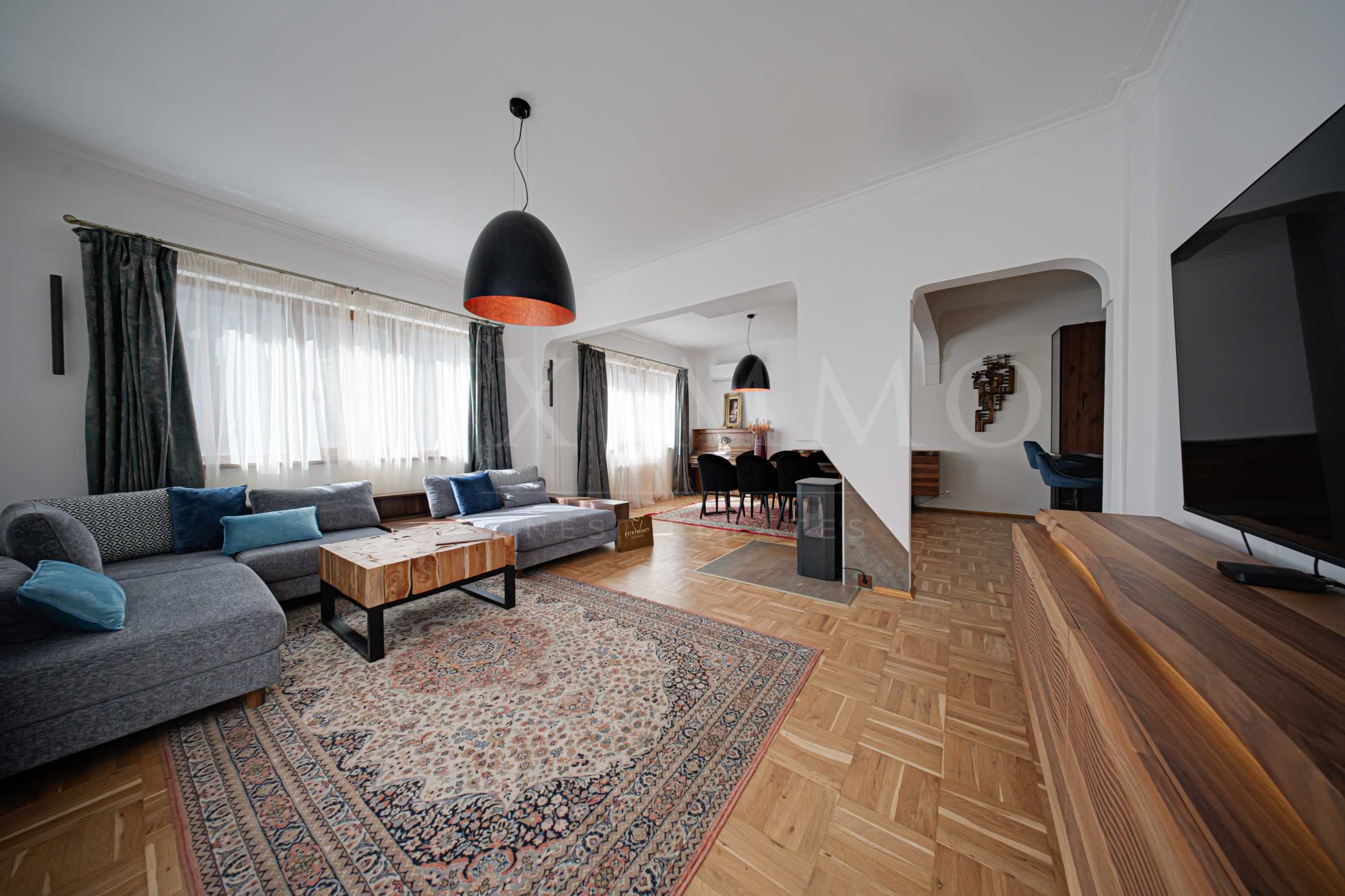 Настилки: Естественият паркет е красиво поддържан, което допринася за усещането за уют и качество в целия апартамент.