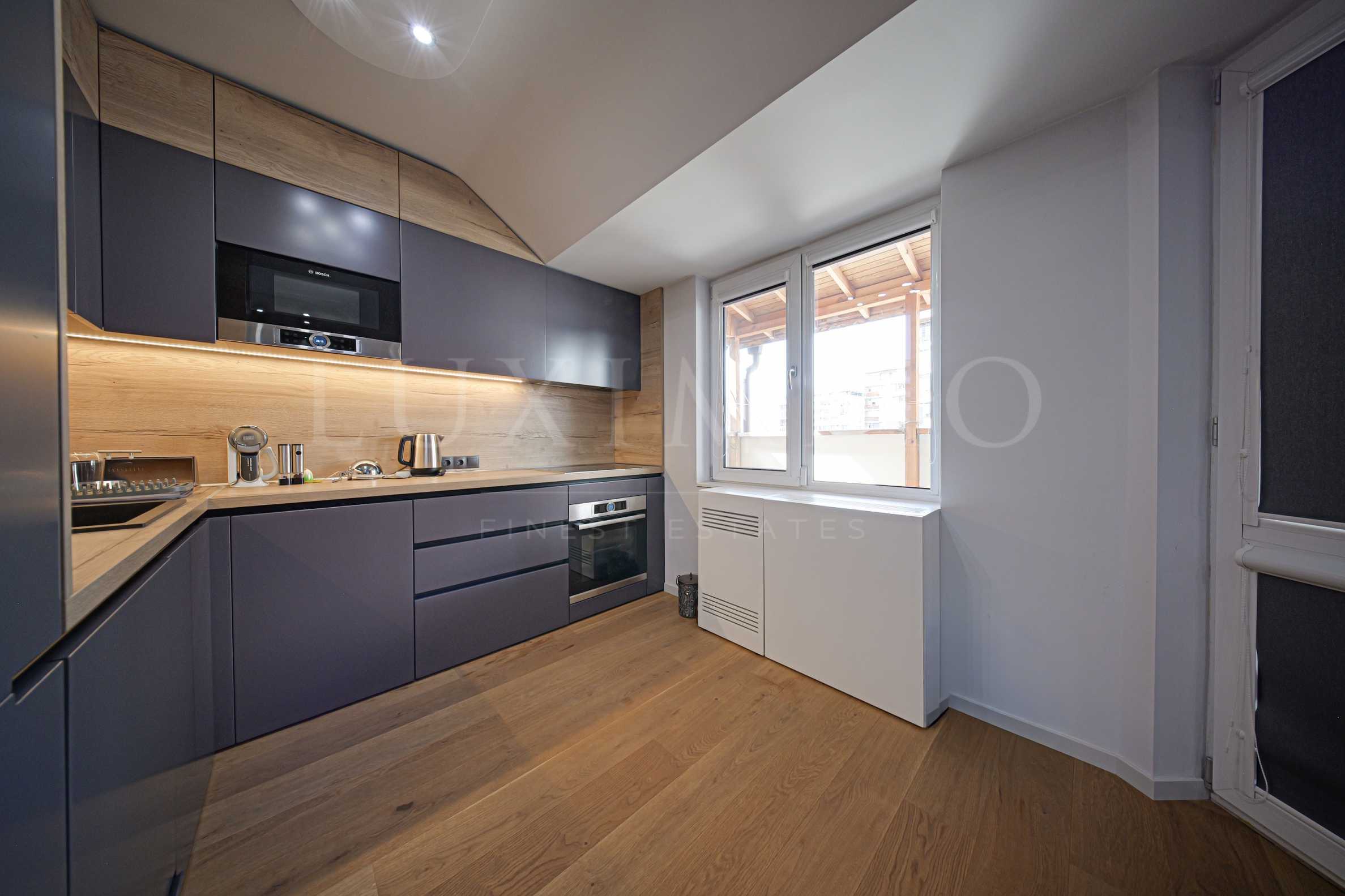 Предлагаме на Вашето внимание изключителен мезонет за продажба, разположен на топ локация в кв. "Стрелбище", непосредствено до живописния Южен парк. Жилището се отличава с модерно и стилно обзавеждане, изпълнено с висококачествени мебели и уреди от водещи марки като Bosch и Liebherr.