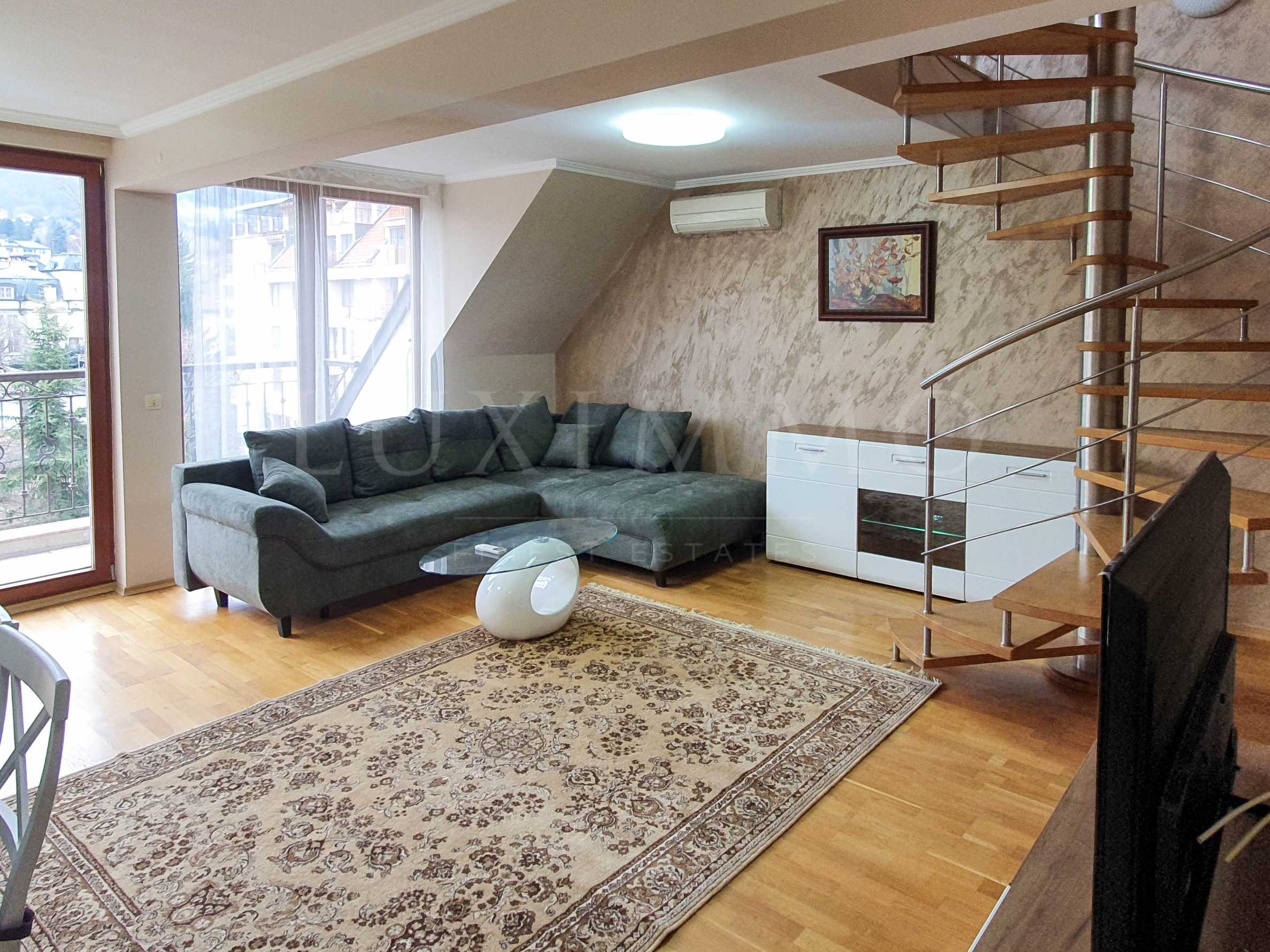 Представяме Ви четиристаен мезонет в комплекс от 2009 година, който се отличава с професионална охрана и красива, поддържана градина, създаваща усещане за комфорт и сигурност. В него се намира и луксозният ресторант ПРОЯ, който предлага изключителна обстановка и вкусна кухня. От терасите на мезонета се разкриват впечатляващи гледки към планината Витоша и столицата София.