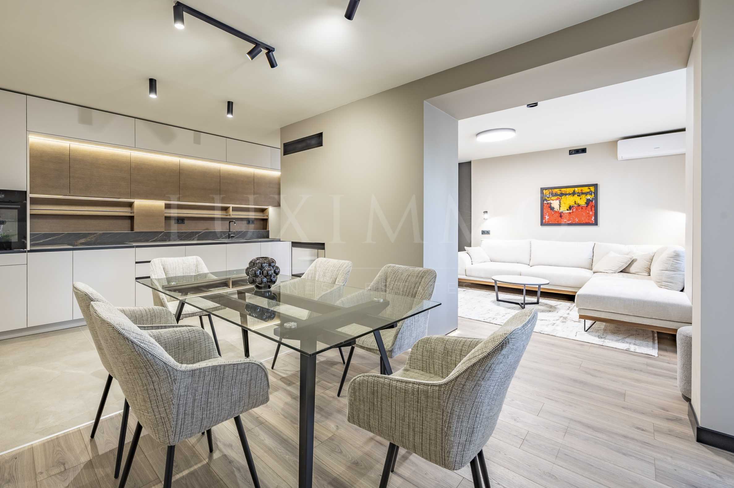 Апартаментът е елегантно обзаведен с дизайнерски мебели по поръчка. Разполага с модерна smart home система за осветление и отопление, която осигурява лесно управление, енергийна ефективност и допълнителен комфорт. А за топла и приятна атмосфера през студените месеци има камина.