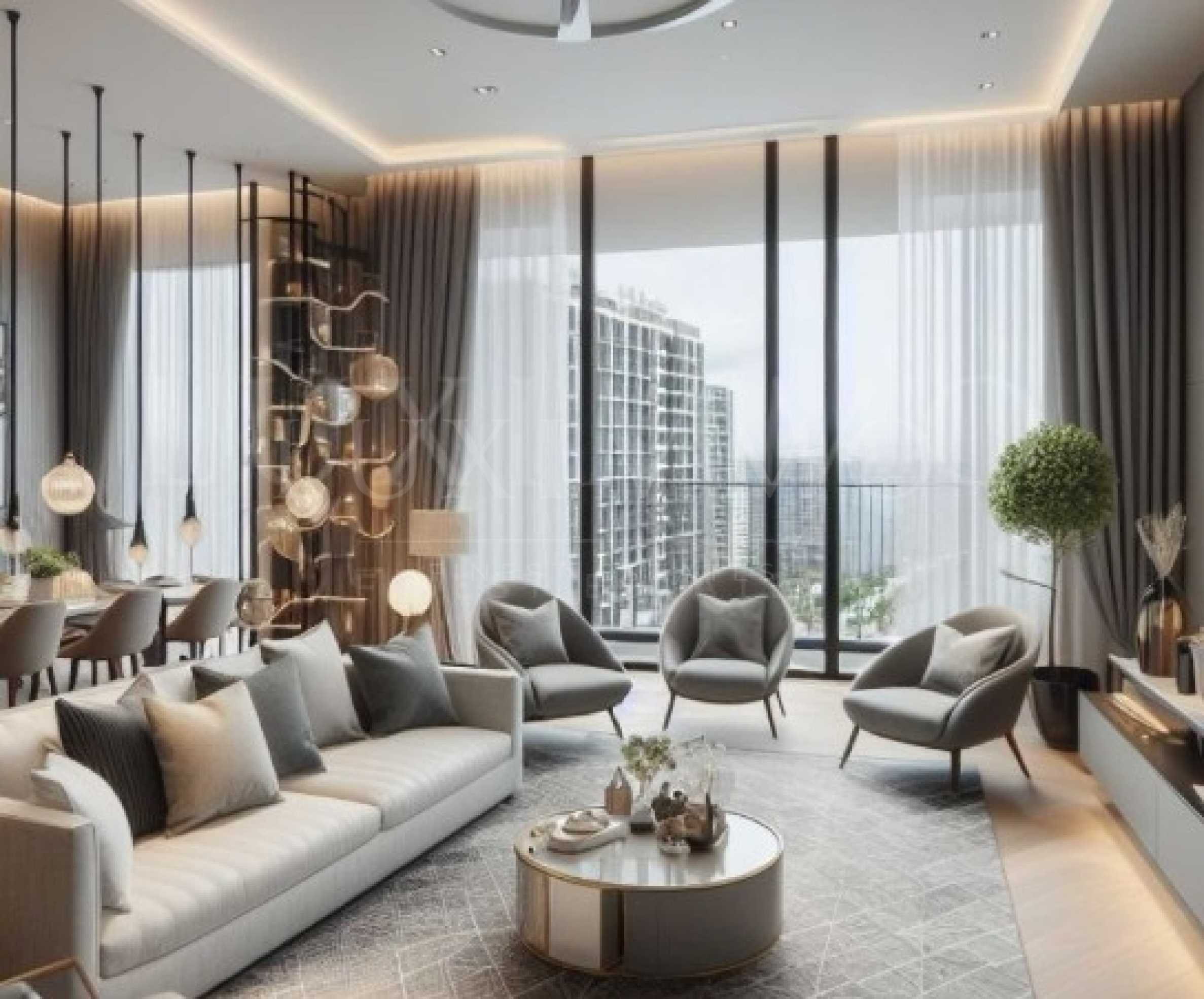 Имотът е изпълнен по индивидуален дизайнерски проект в елегантен, модерен стил, с внимание към всеки детайл и висока функционалност. Обзавеждането включва мебели и уреди от най-висок клас – Miele, Liebherr, Sony, Toshiba, естествени настилки от орехов шаврон и италиански дизайнерски мебели.
