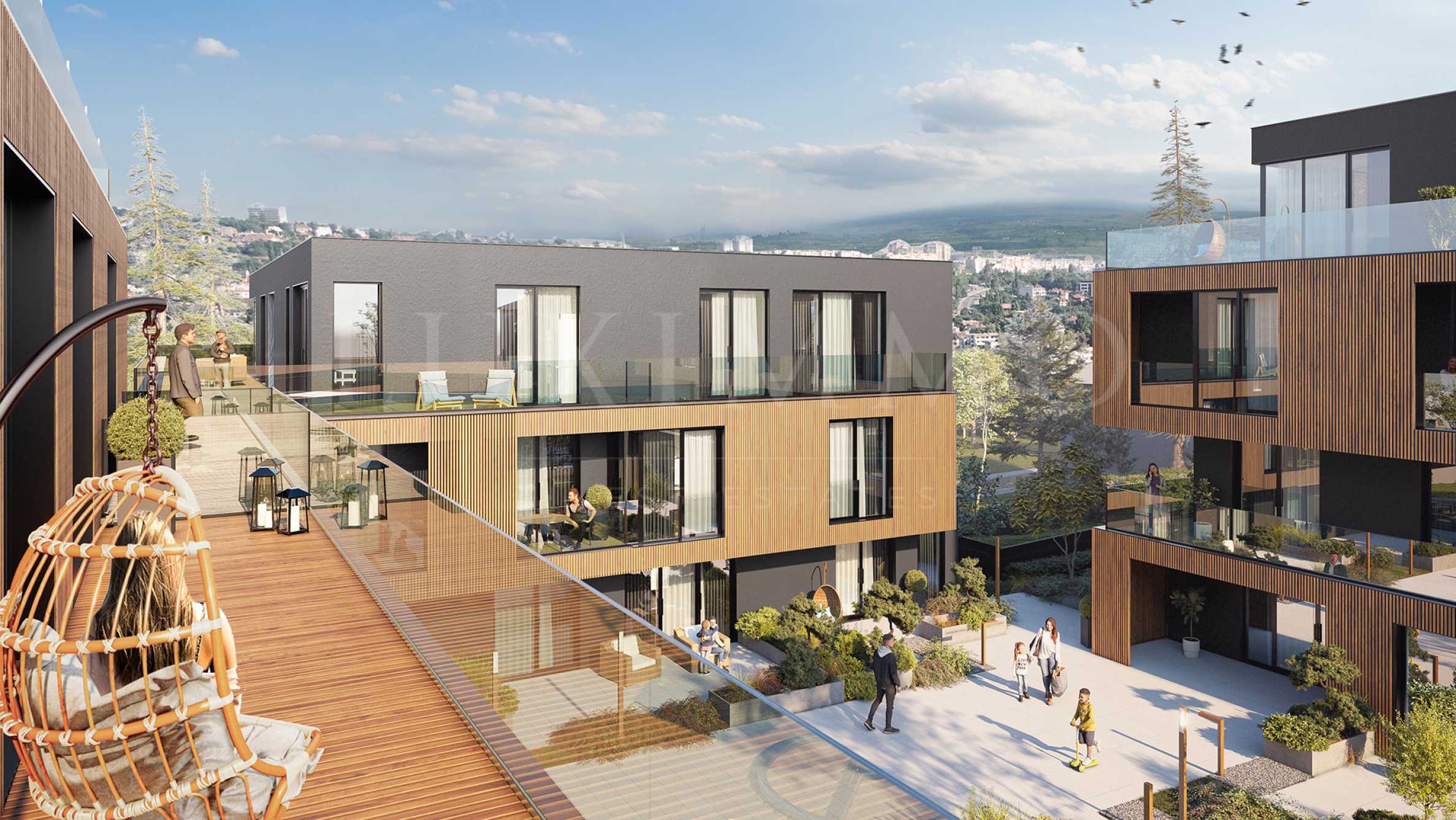 • Стъклени парапети и модерни фасадни елементи, подчертани в унисон с околната среда;
