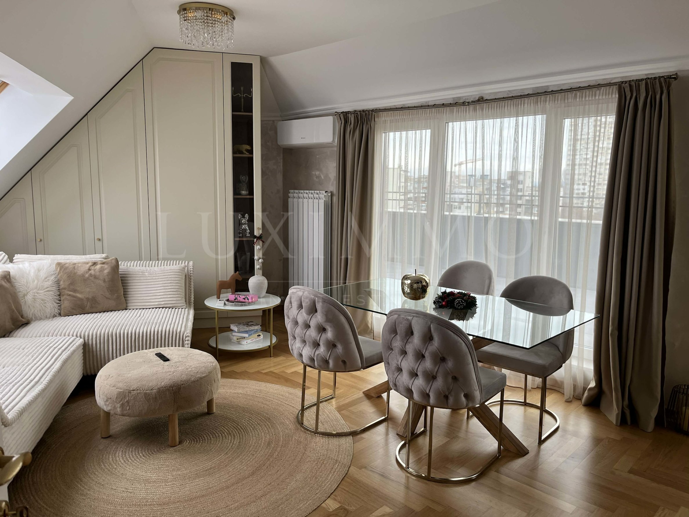 Дограма: „Алупласт“, модел „Идеал 7000“, двуцветна, 85мм профил, троен стъклопакет;