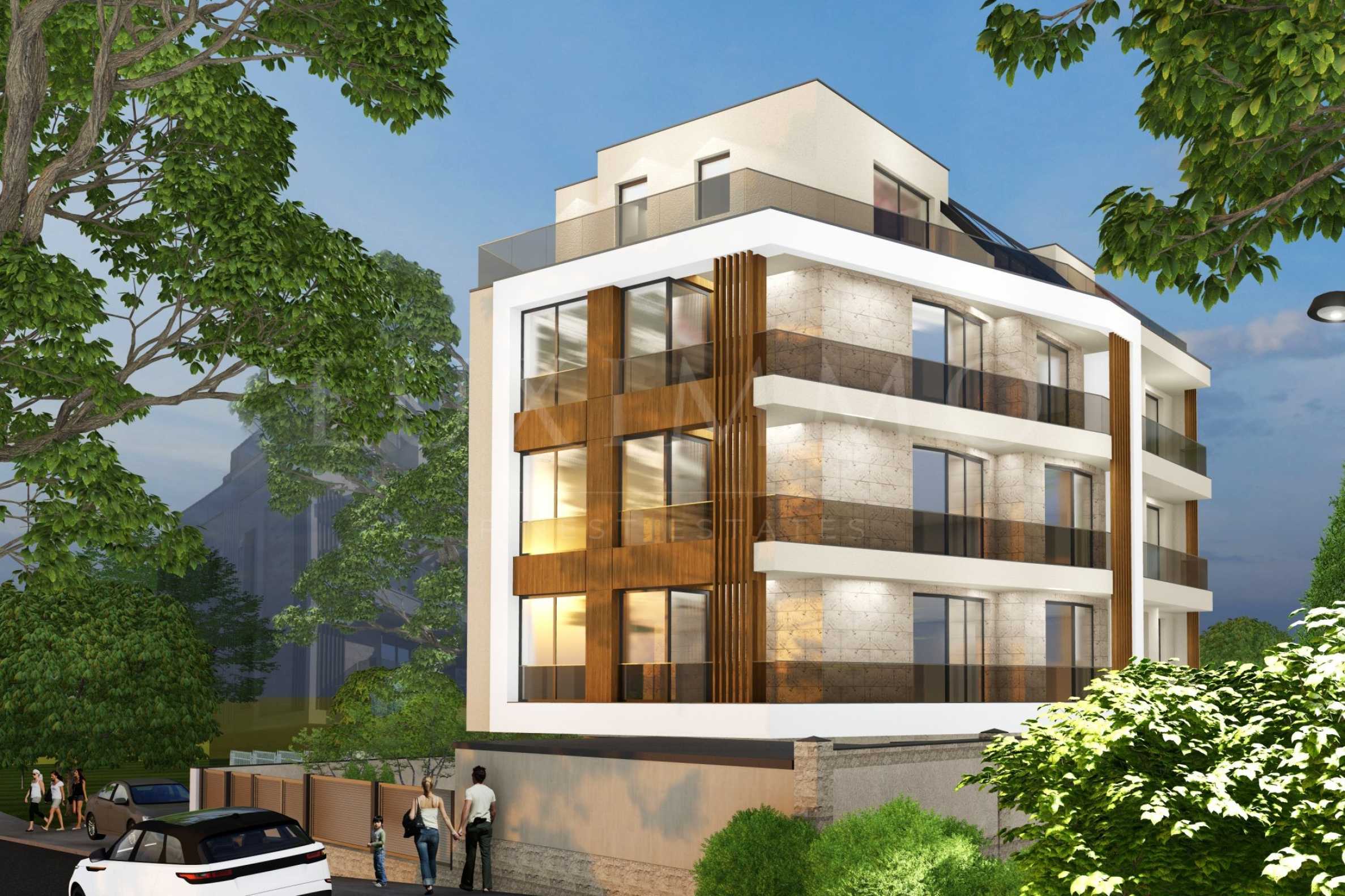 Сградата е с разгъната застроена площ от 1 298 кв.м, с модерна визия и висок клас изпълнение, като на всеки етаж са разположени само по два апартамента.