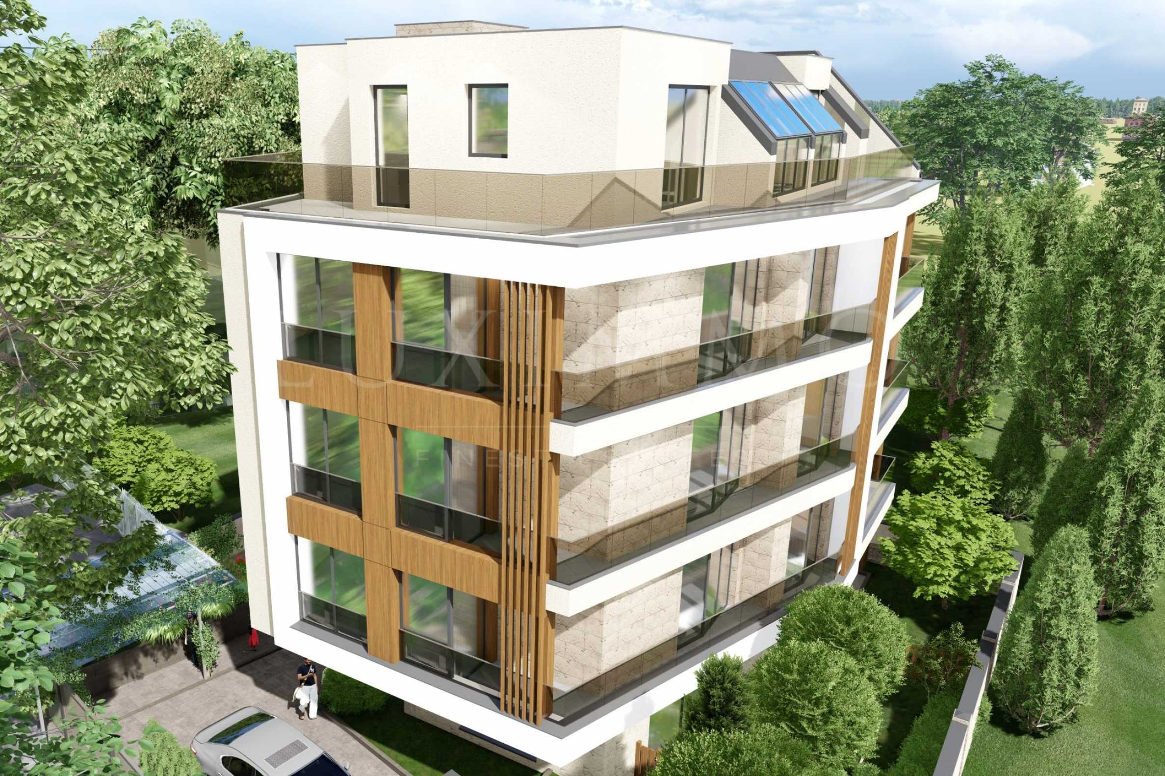 Сградата е с разгъната застроена площ от 1 298 кв.м, с модерна визия и висок клас изпълнение, като на всеки етаж са разположени само по два апартамента.