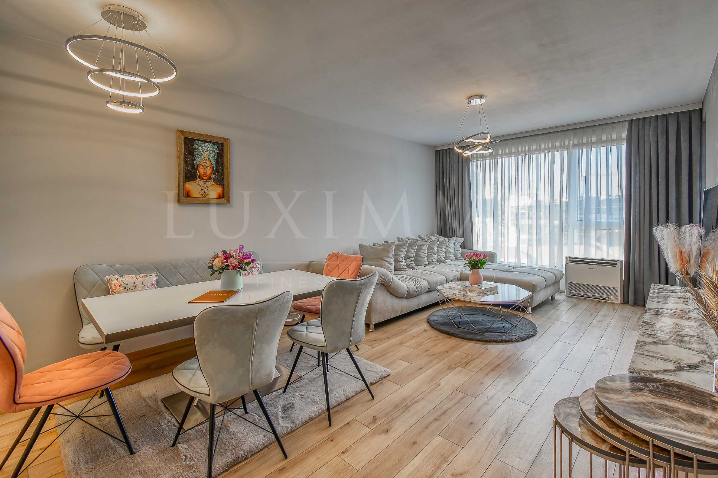 Предлагаме Ви стилен и уютен двустаен апартамент, разположен в затворен комплекс. Жилището се намира на петия етаж от шестетажна сграда, построена през 2019 г. Имотът е завършен и обзаведен с изключителен вкус и внимание към детайлите, създавайки усещане за топлина, светлина и комфорт във всяко помещение. Апартаментът впечатлява със своите просторни стаи, обилна естествена светлина и прекрасна гледка. Комплексът е малък и изключително добре поддържан, с озеленени общи части, двор, детска площадка и денонощна охрана.